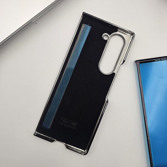 Samsung Z Fold 5 PU Leather Chrome Plated Ring Case Cover Inside Velvet Clearance Sale
