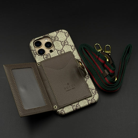 iPhone Luxury GG Stripe Leather Wallet Case with Cardholder & Crossbody Sling
