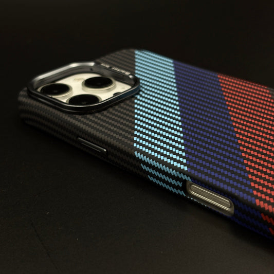 Aramid Texture Case 3 Stripe Color for iPhone | Carbon Fibre Feel | Hidden MagSafe | Ultra Slim Fit