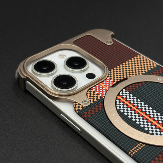 Kevlar Metal Gold Frame Phone Case for iPhone Series | MagSafe Compatible with Phone Stand | Rugged Style Protection