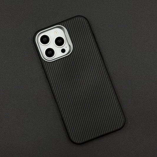 iPhone Series Black Premium Slim Case | Rare Aramid Texture Finish | Real Carbon Fibre Feel | Hidden MagSafe