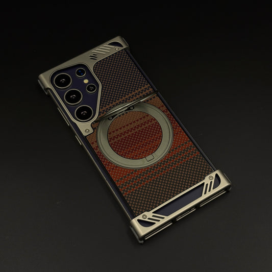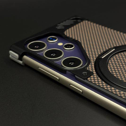 Bronze Carbon Terra Metal Frame Case for Samsung Galaxy S24 Ultra | MagSafe Compatible with Phone Stand | Rugged Style Protection