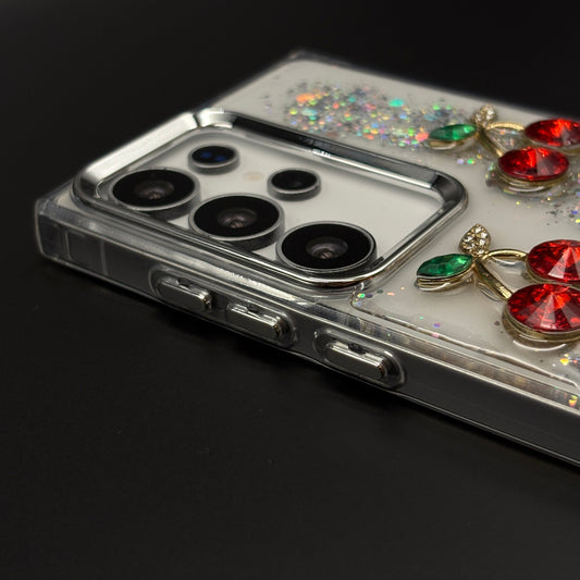 Cherry Shimmer Glitter Phone Case Cover for Samsung Galaxy S24 Ultra | Gemstone 3D Fruit Cover