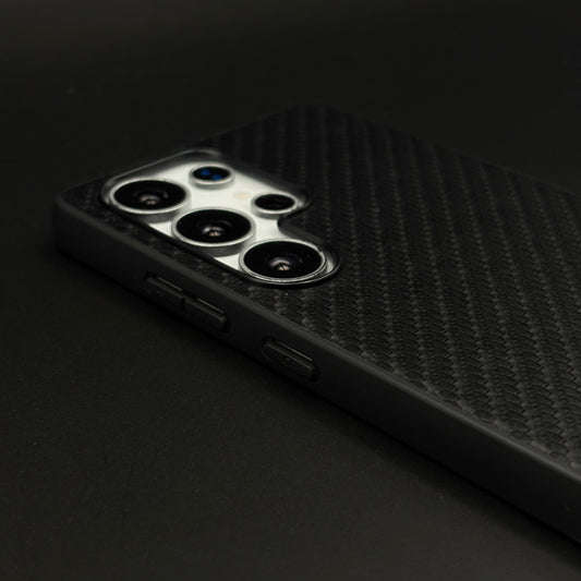Ivory Plaid Black Phone Case Cover for Samsung Galaxy S24 | S25 | Rare Aramid Texture Finish | Real Carbon Fibre Feel | Hidden MagSafe