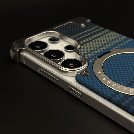 Blue Kevlar Metal Frame Case for Samsung Galaxy S25 Ultra | MagSafe Compatible with Phone Stand | Rugged Style Protection