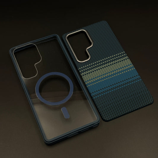 Blue Block Aramid Case with Hidden MagSafe for Samsung Galaxy S25 Ultra | Camera Kickstand | Carbon Fibre Feel