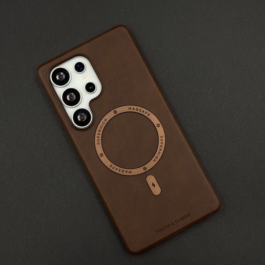 Luxury Leather MagSafe Case for Samsung Galaxy S25 Ultra | Premium Magnetic Charging Support