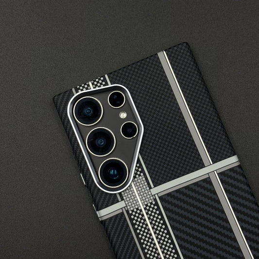 Samsung Galaxy S25 Ultra Striped Black Premium Slim Case | Rare Aramid Texture Finish | Real Carbon Fibre Feel | Hidden MagSafe
