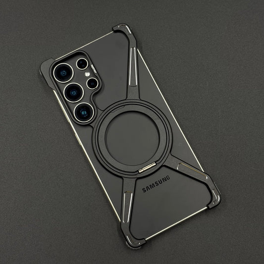 Frameless Carbon Fiber Bumper Case for Samsung Galaxy S25 Ultra | 360° Rotating Magsafe Stand | Rugged Magnetic Protection