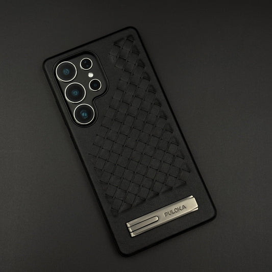 Leather Grid Pattern Kickstand Case for Samsung Galaxy S25 Ultra | Slim Shockproof Protective Cover