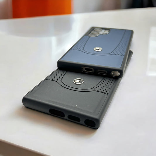 Samsung Galaxy S25 Ultra Merc Dotted Pattern PU Leather Sports Car Logo Case