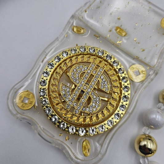 Samsung Galaxy Z Flip 4 Premium Dollar Rotating Bracelet Wristband Pearl Case