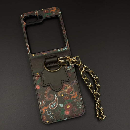 Indian Art Designer Phone Case Cover for Samsung Galaxy Z Flip 6 | Paisley Leather Cover with Chain Strap | Traditional Print