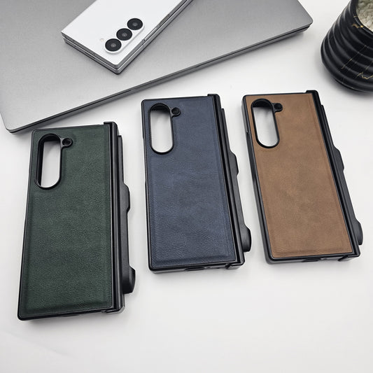 Samsung Galaxy Z Fold 6 With Hinge Protector PU Leather Case