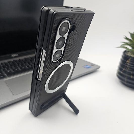 Samsung Galaxy Z Fold 6 Textured Leather Magsafe With Kickstand Case