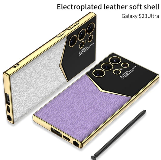 Samsung Galaxy S23 Ultra Luxury Electroplated Leather Case Cover