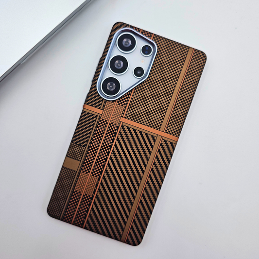 Samsung Galaxy S24 Ultra Brown Premium Slim Case | Rare Aramid Texture Finish | Real Carbon Fibre Feel | Hidden MagSafe