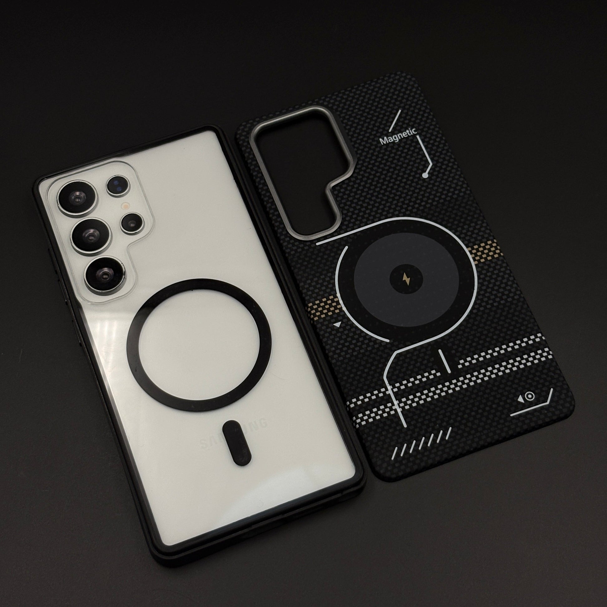 Switch your style and protection with this innovative 2-in-1 detachable magnetic case for Samsung Galaxy S24 Ultra—featuring a transparent MagSafe-ready shell and a magnetic attachable design plate for instant customization and dual-function protection.