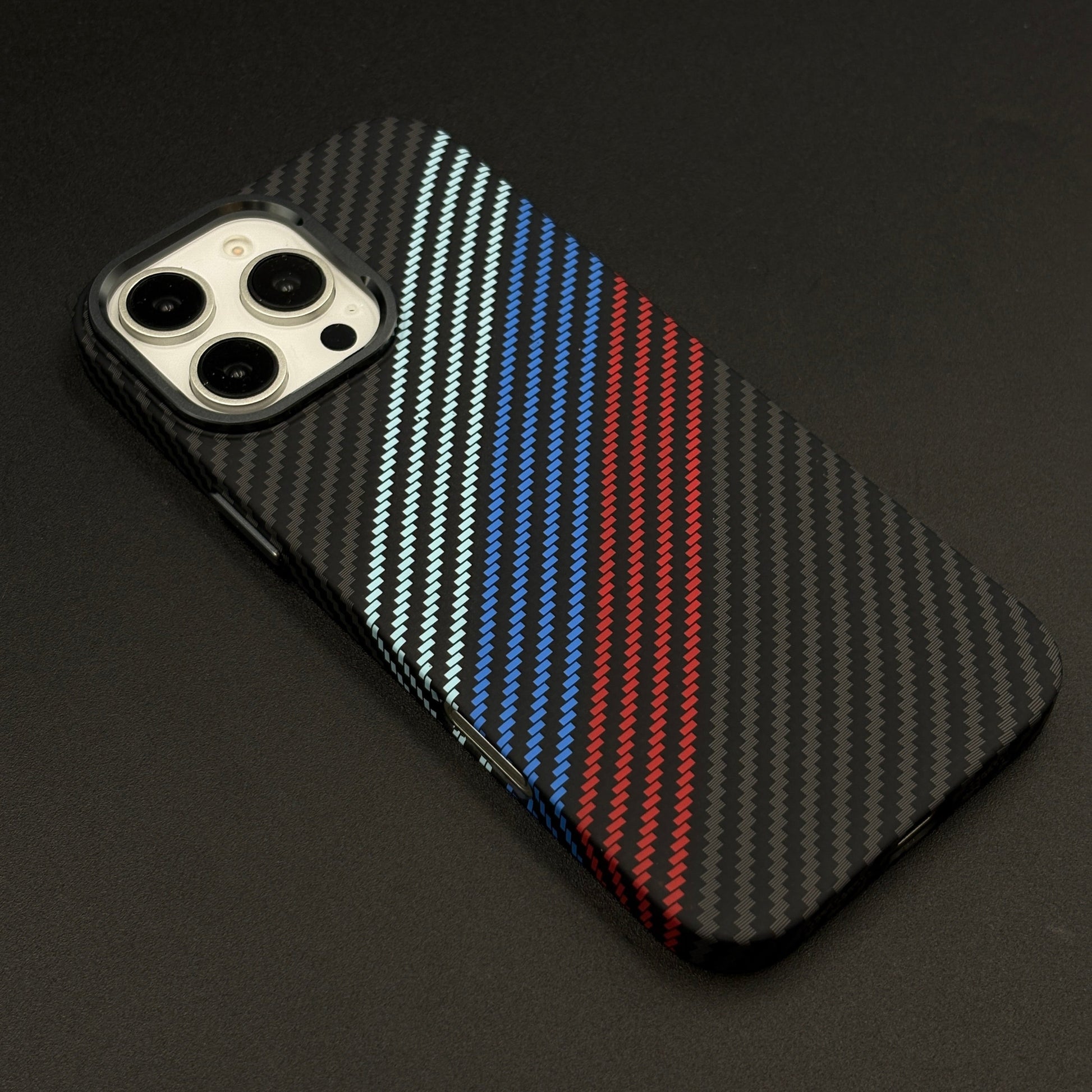 Aramid Texture Case 3 Stripe Color for iPhone | Carbon Fibre Feel | Hidden MagSafe | Ultra Slim Fit