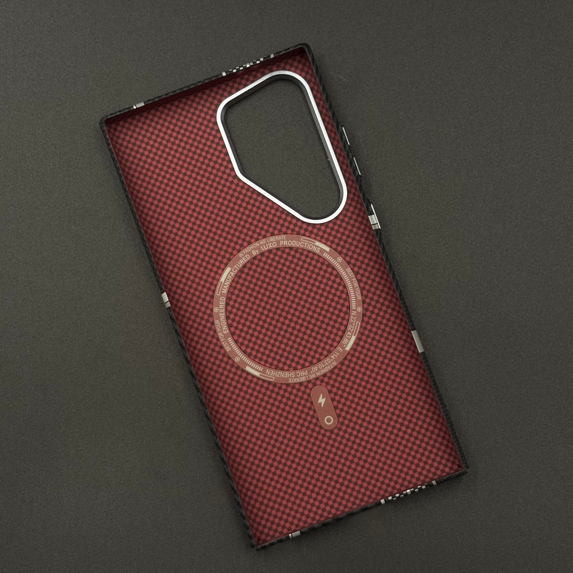 Upgrade your Galaxy S25 Ultra with this sleek aramid-texture case, combining the luxurious look of carbon fibre with the practicality of MagSafe compatibility. Designed for those who value both performance and precision style.