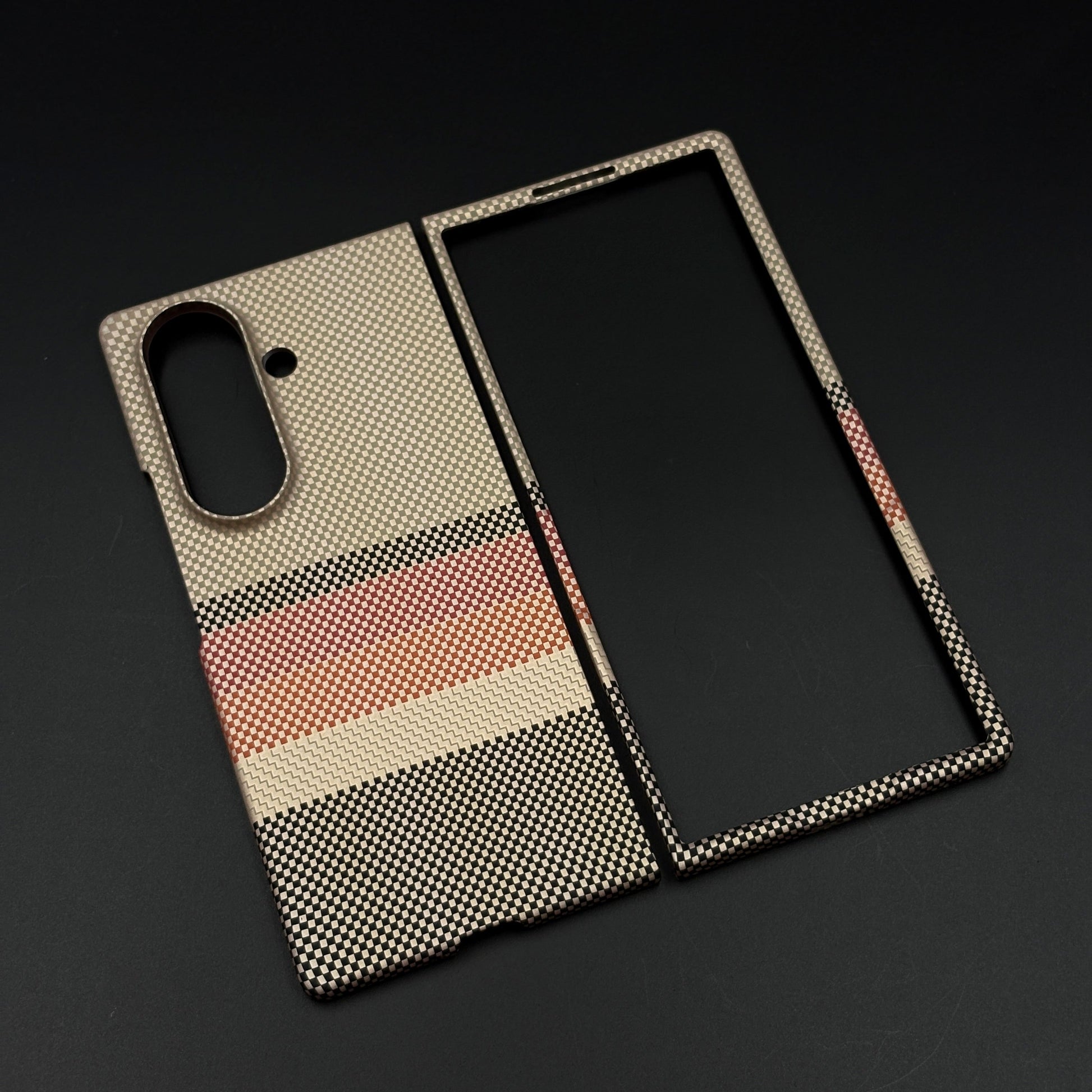 Beige Multi-Stripe Aramid Case with Hidden MagSafe for Samsung Galaxy Z Fold 6 | Camera Kickstand | Carbon Fibre Feel
