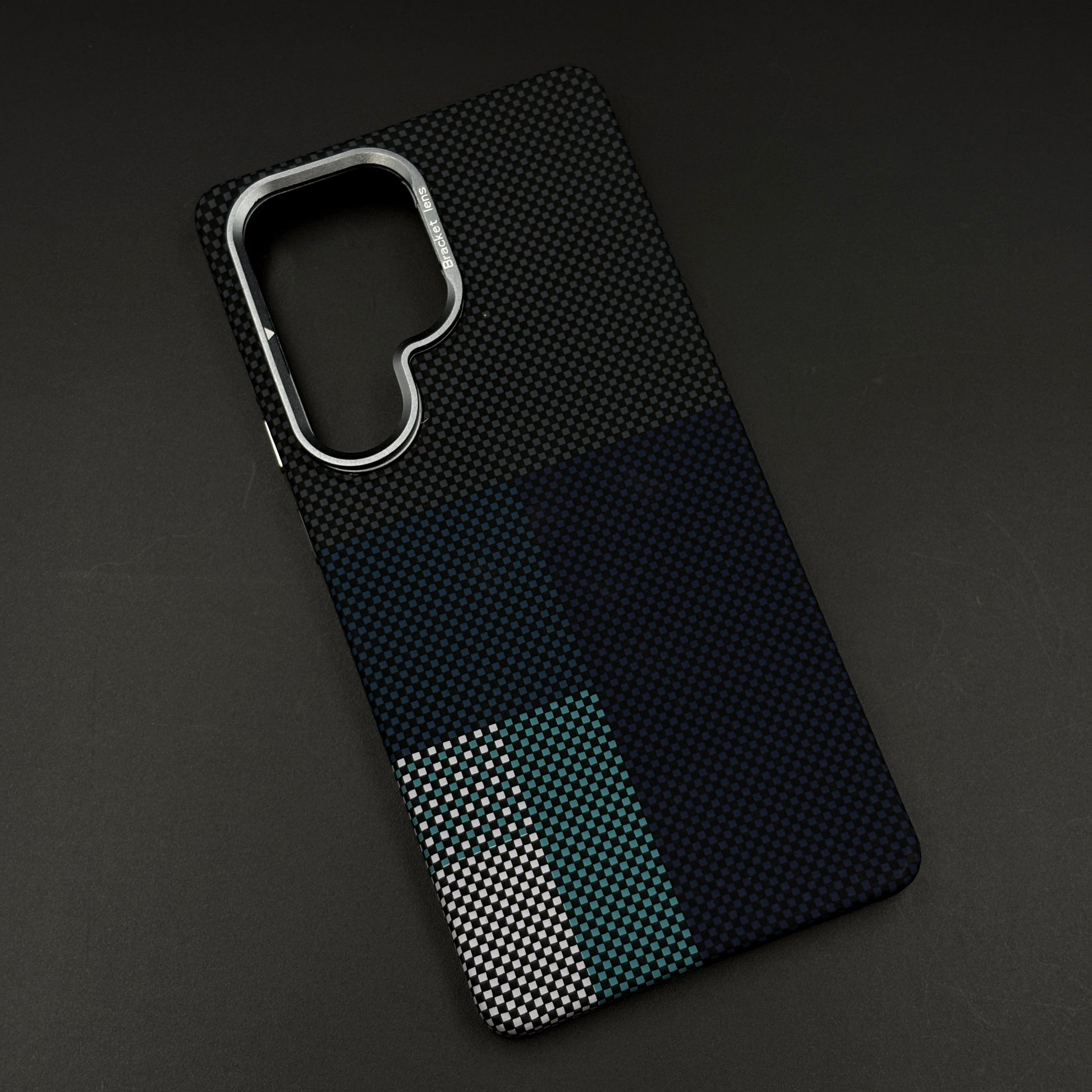 Blue Block Aramid Case with Hidden MagSafe for Samsung Galaxy S25 Ultra | Camera Kickstand | Carbon Fibre Feel