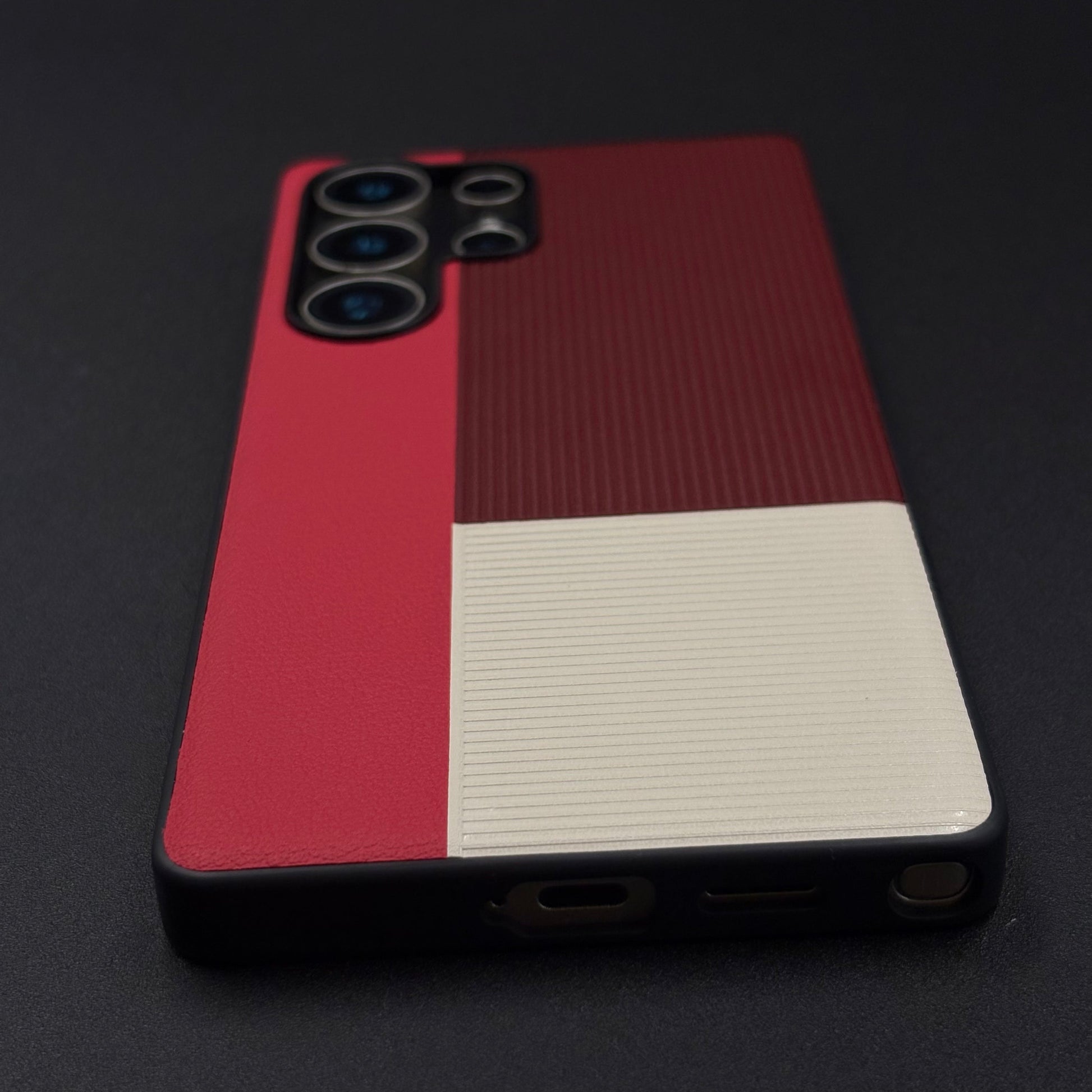 Color Block (Maroon, Red, White) Phone Case for Samsung Galaxy S25 Ultra | Textured Grip + Sleek Fit