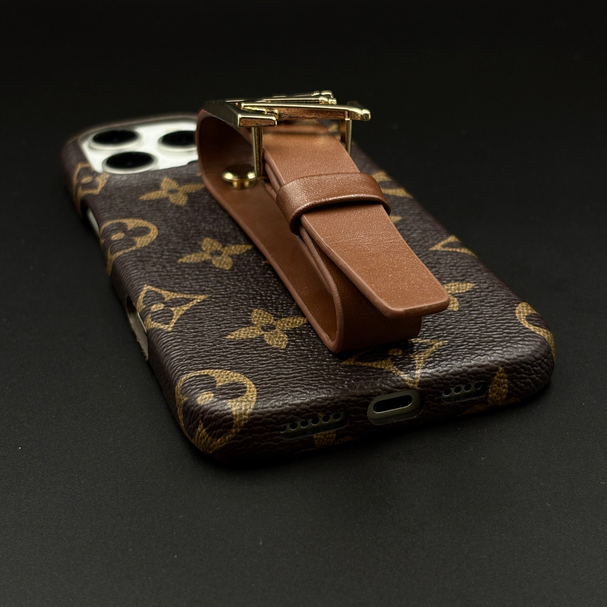 Designer Brand Pattern Leather Belt Strap Case for iPhone | Premium Monogram | Fashion Buckle Holder