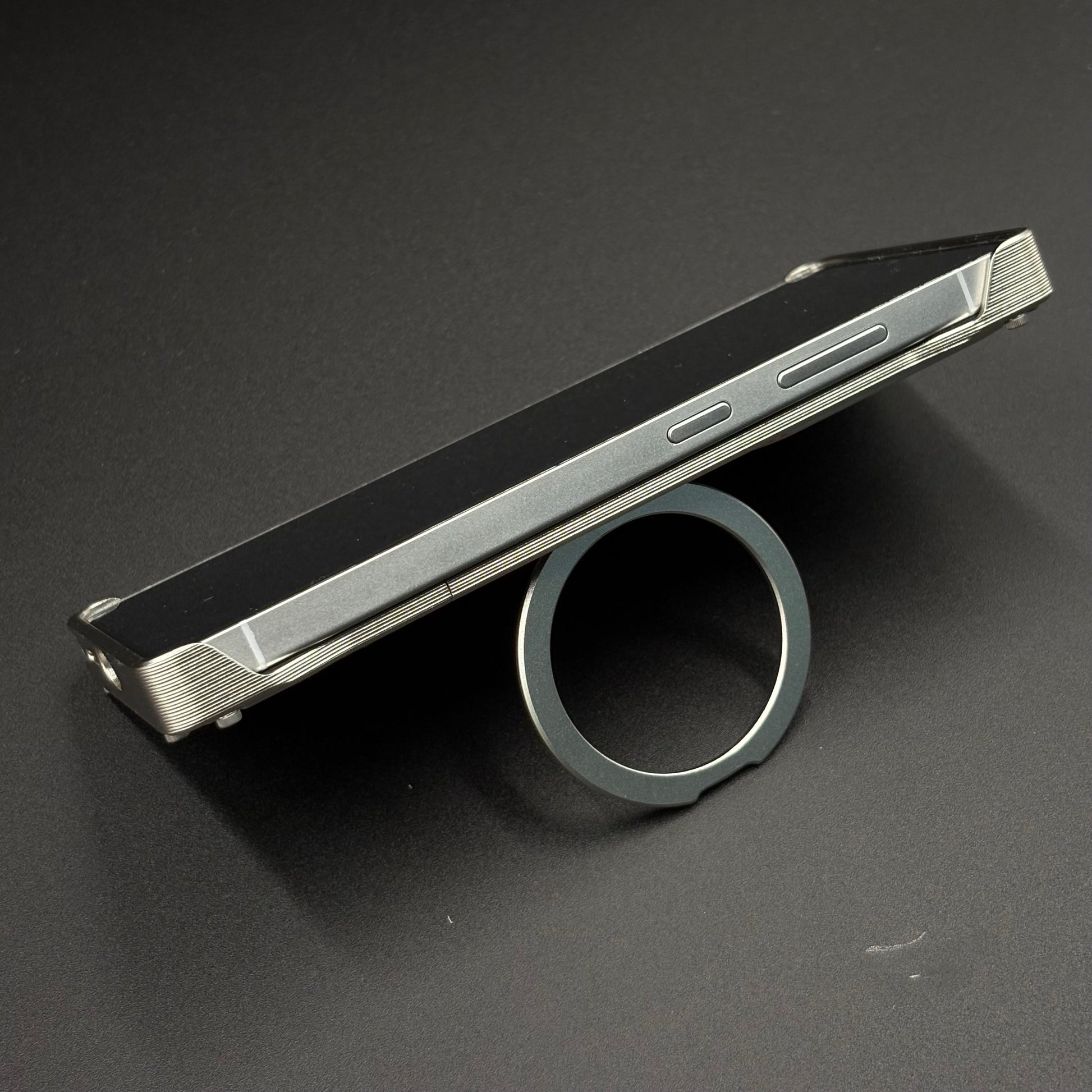 Crafted with a bold frameless profile, this case features a premium carbon fiber back, metallic detailing, and a 360° rotating Magsafe-compatible stand for complete hands-free convenience and modern magnetic charging support.