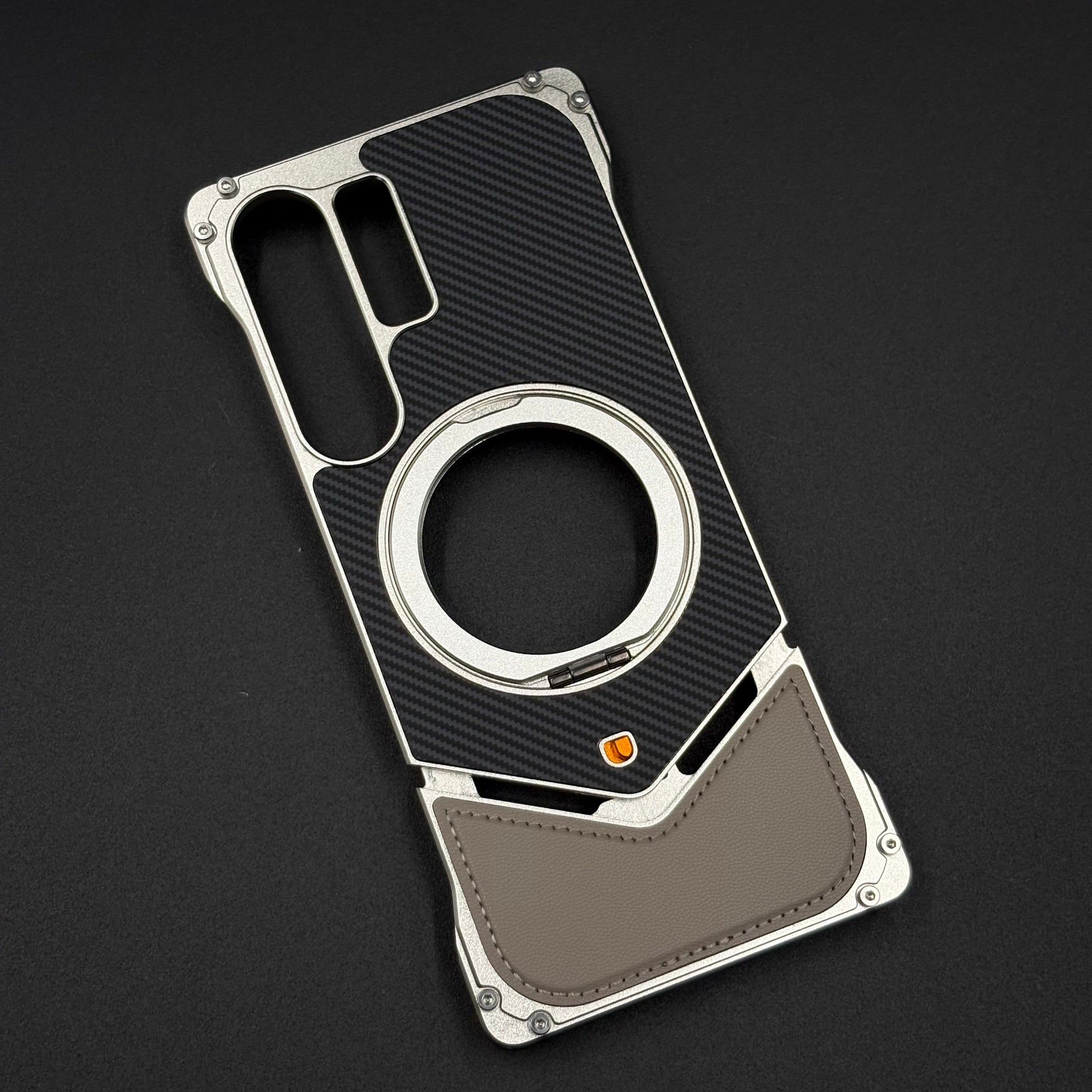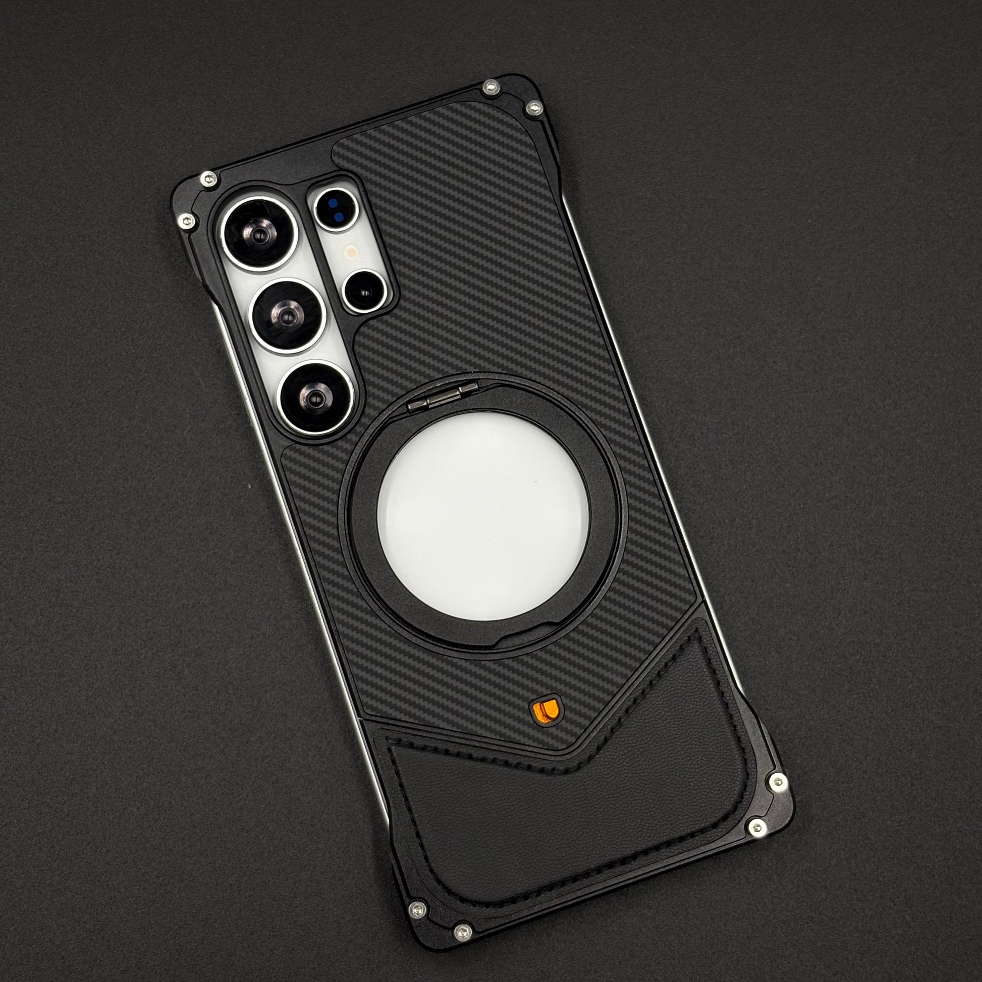 Frameless Carbon Fiber Bumper Case for Samsung Galaxy S24 Ultra | 360° Rotating Magsafe Stand | Rugged Magnetic Protection
