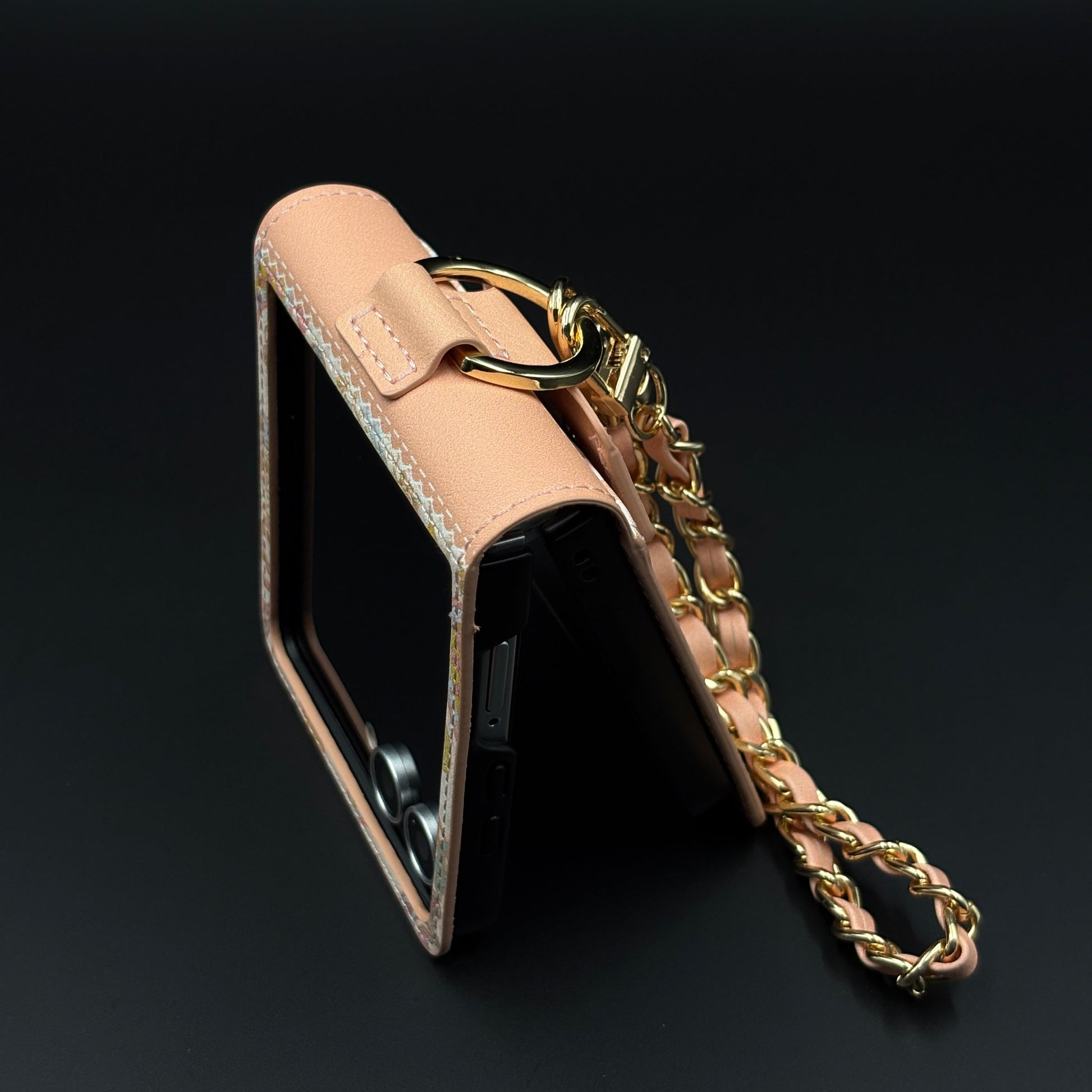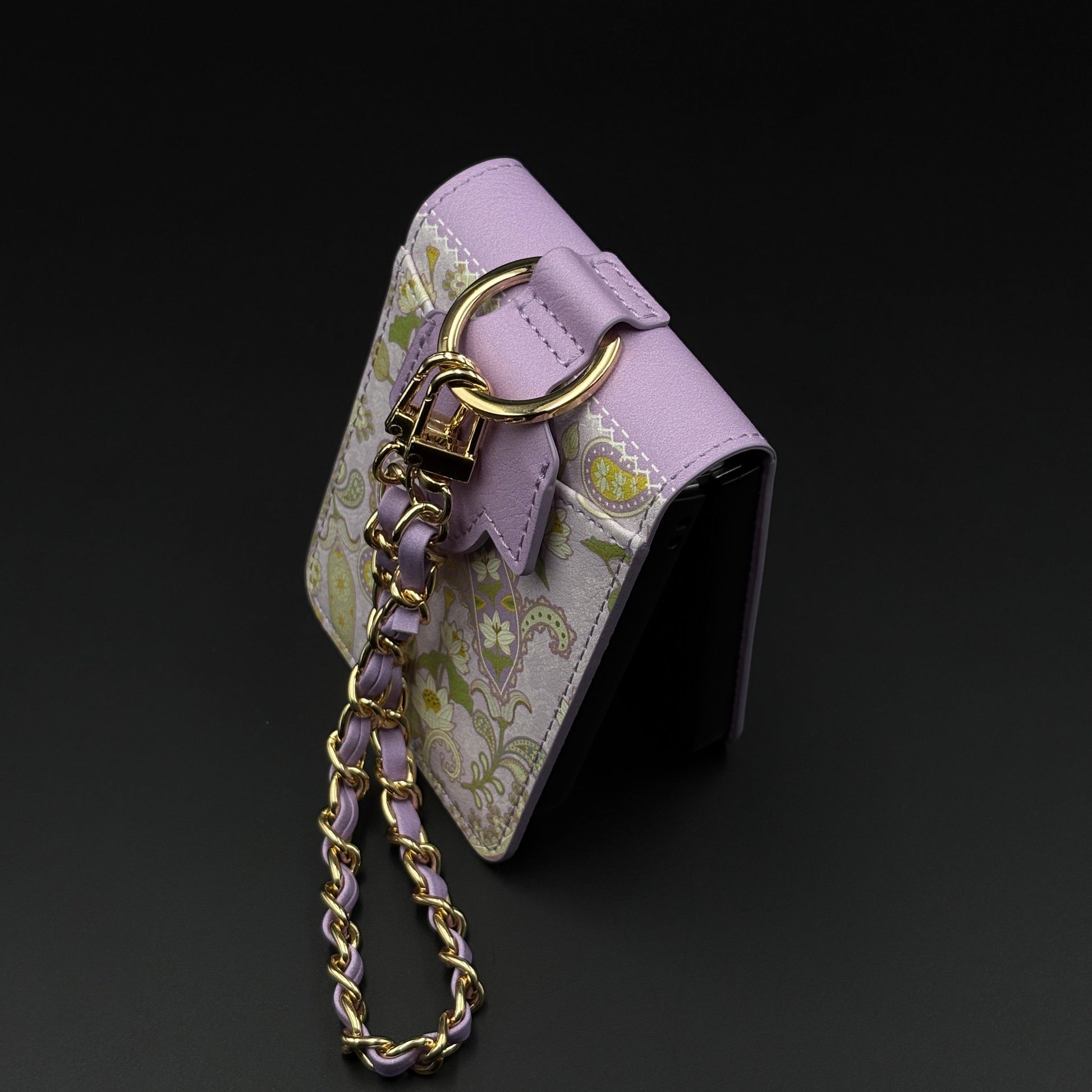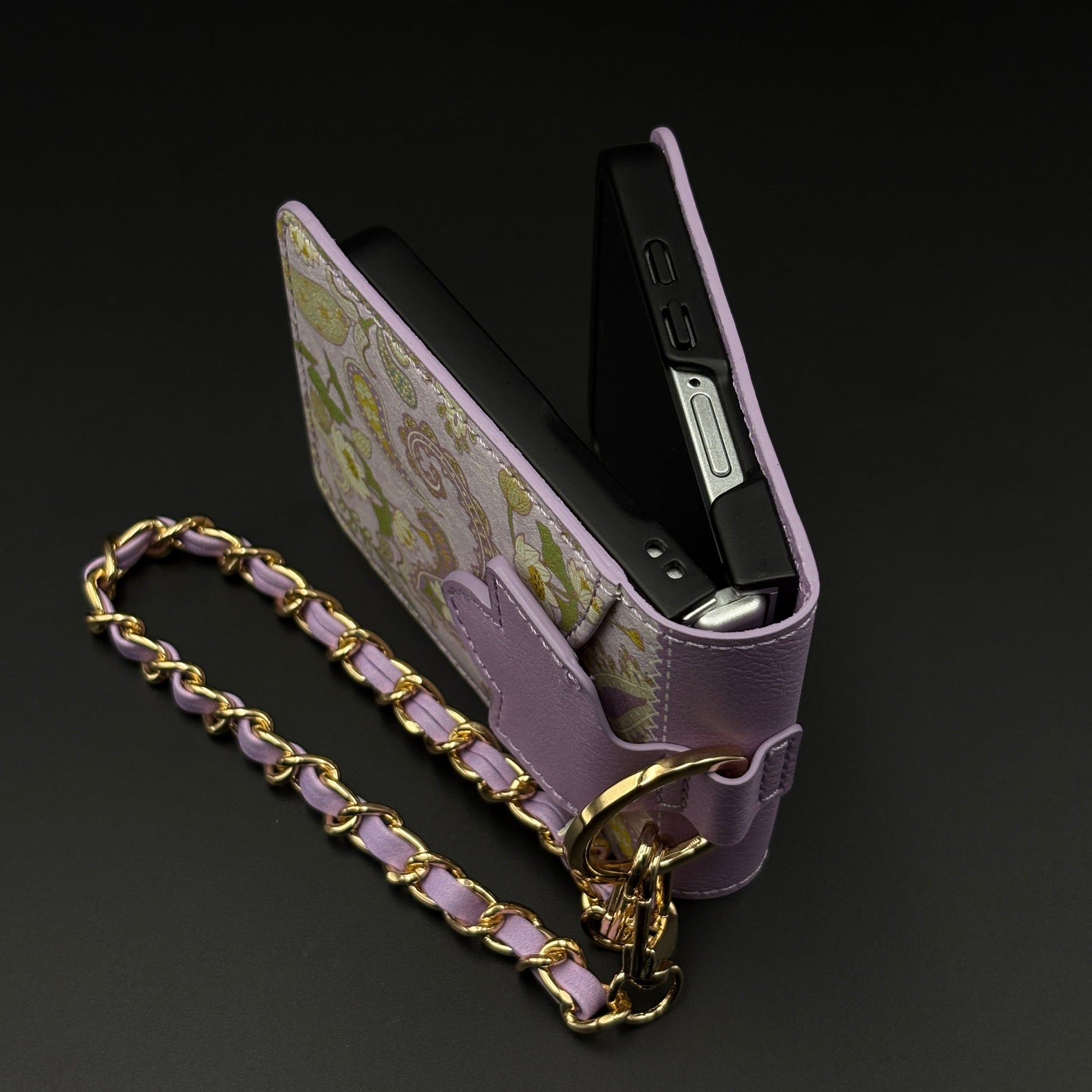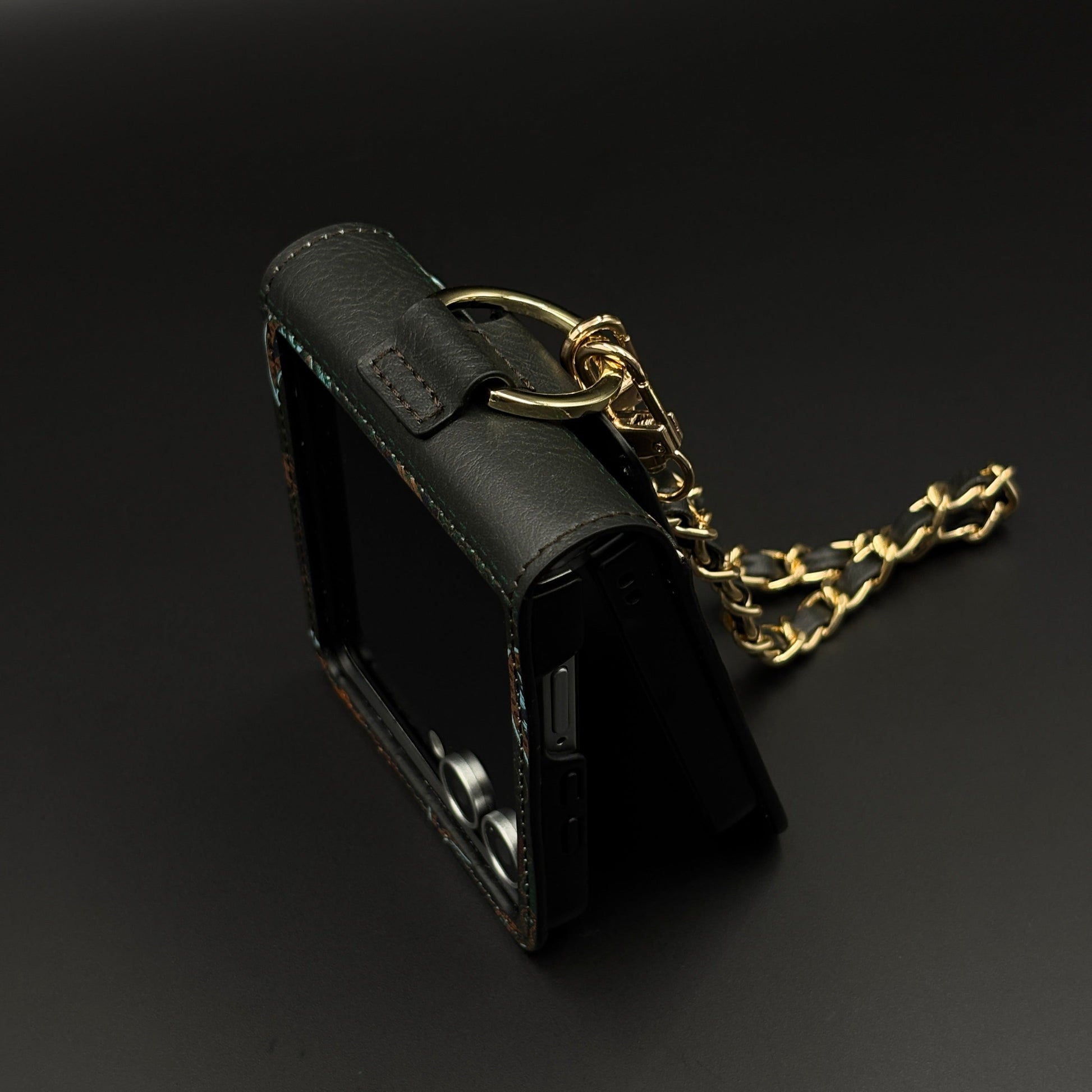 Celebrate the richness of Indian heritage with this beautifully crafted Designer Case for Samsung Galaxy Z Flip 7. Featuring intricate Indian art-inspired paisley patterns, this case brings together traditional aesthetics and modern functionality. Made with premium PU leather and adorned with a detachable gold-accented chain, itβs perfect for those who love bold, ethnic elegance in their everyday essentials. The built-in grip strap adds comfort and practicality for daily use.
