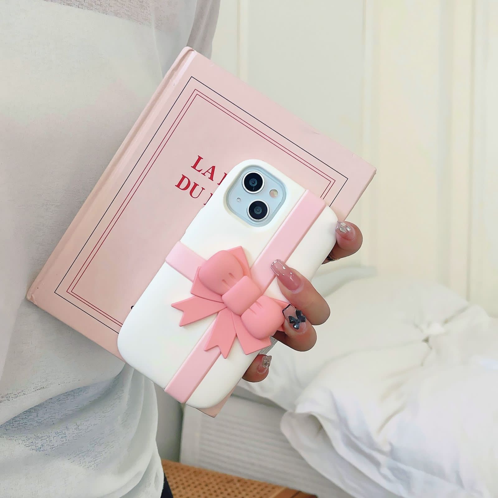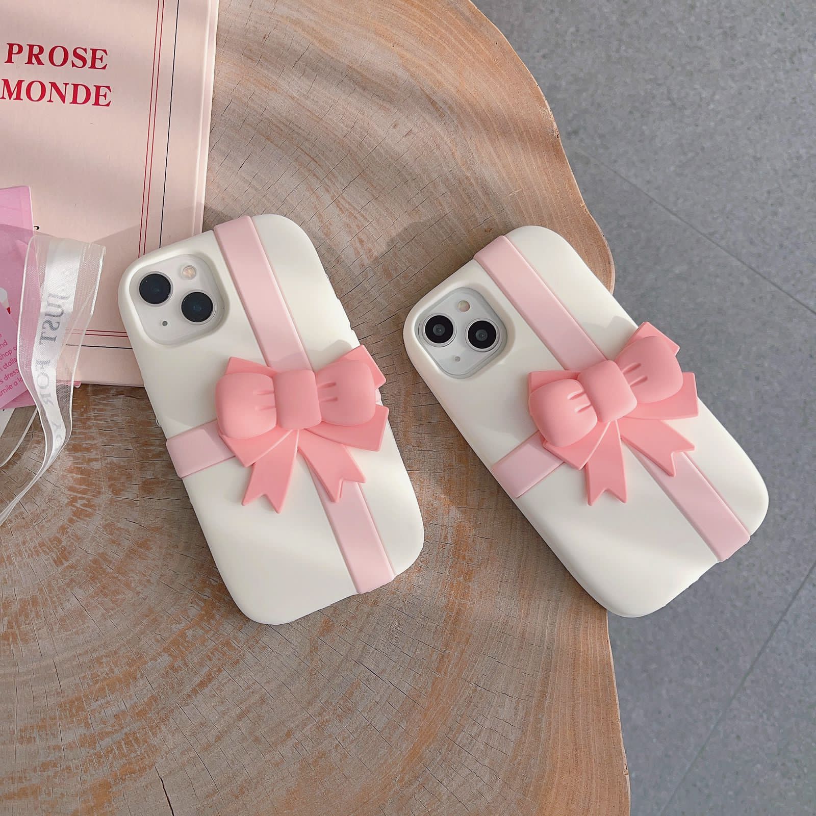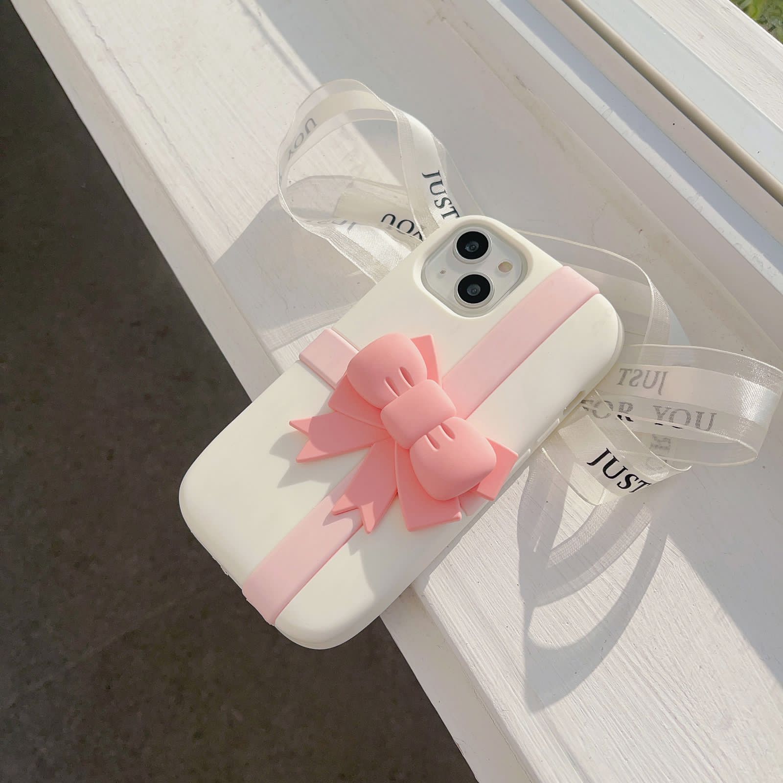 iPhone 15 Pro Pink Bow Silicone Case Cover Beige Clearance Sale