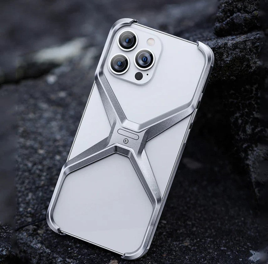 iPhone 15 Series Ultra Thin Aluminium Alloy X Shaped Metal Case Cover