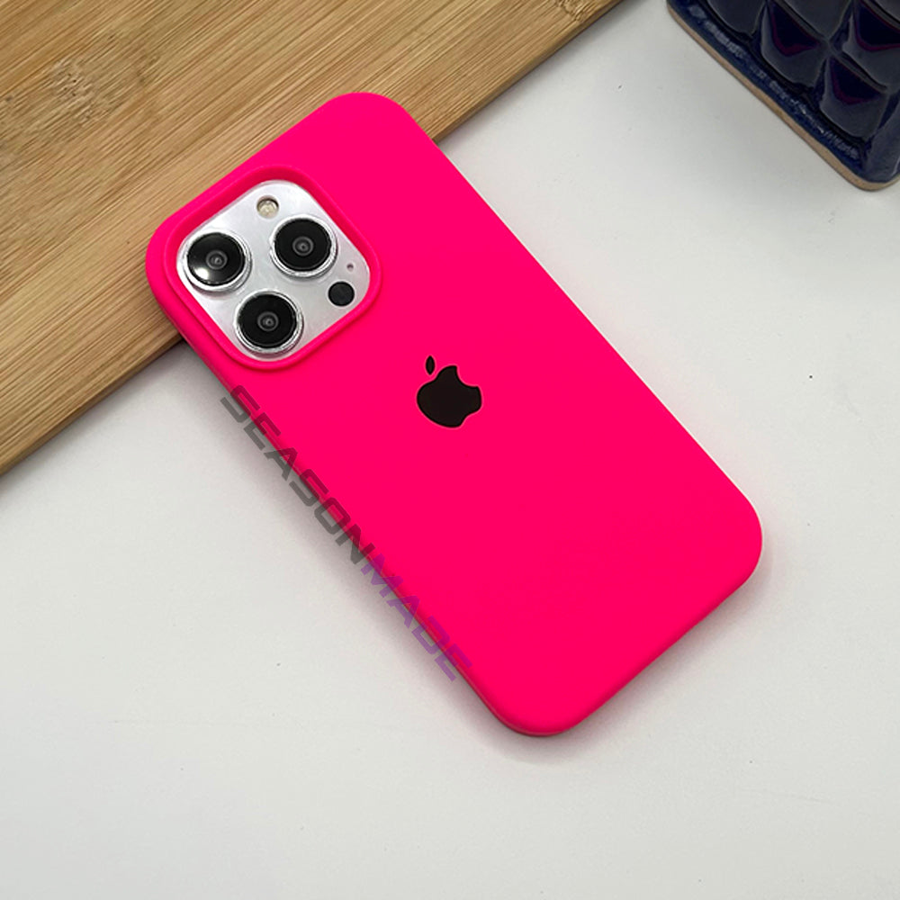This fluorescent pink back cover adapts perfectly to the volume buttons, side button and curves of the phone, and does not bulge anything. This plain rubber pouch case protects the iPhone which is shock proof and has soft microfibre inside to protect your device, the special silicone finish is very pleasant to the touch.