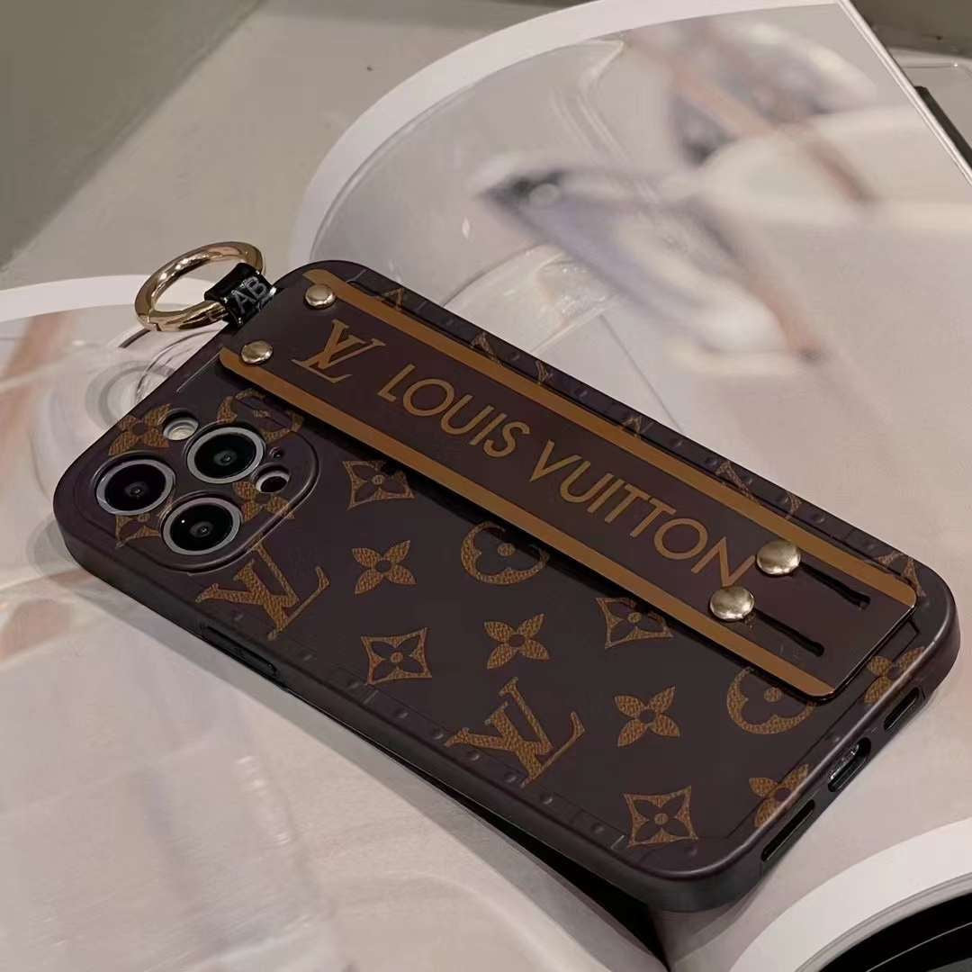 iPhone 16 Series Luxury Brand Strap Belt Case Cover Brown