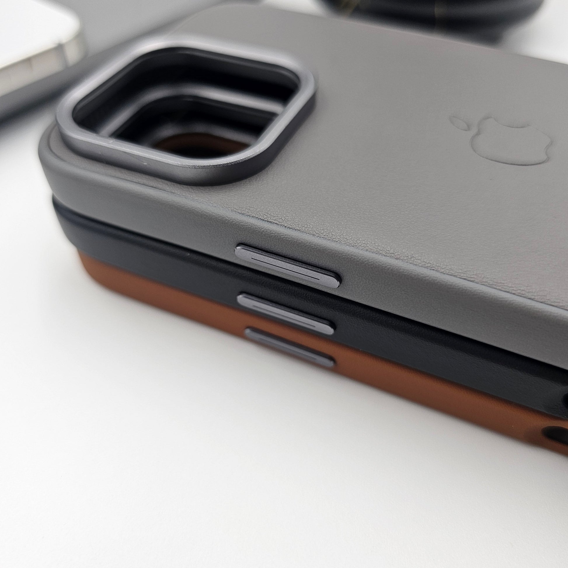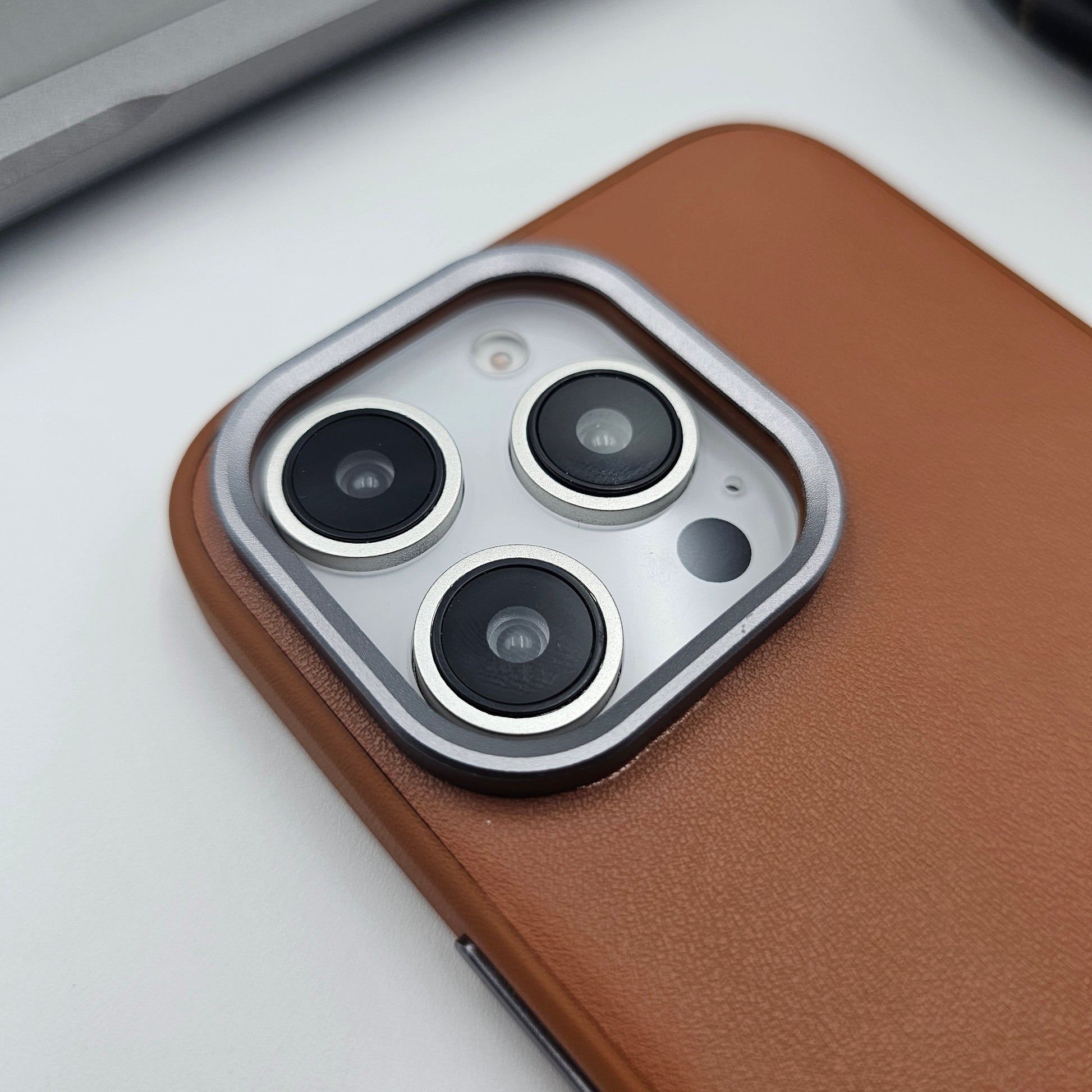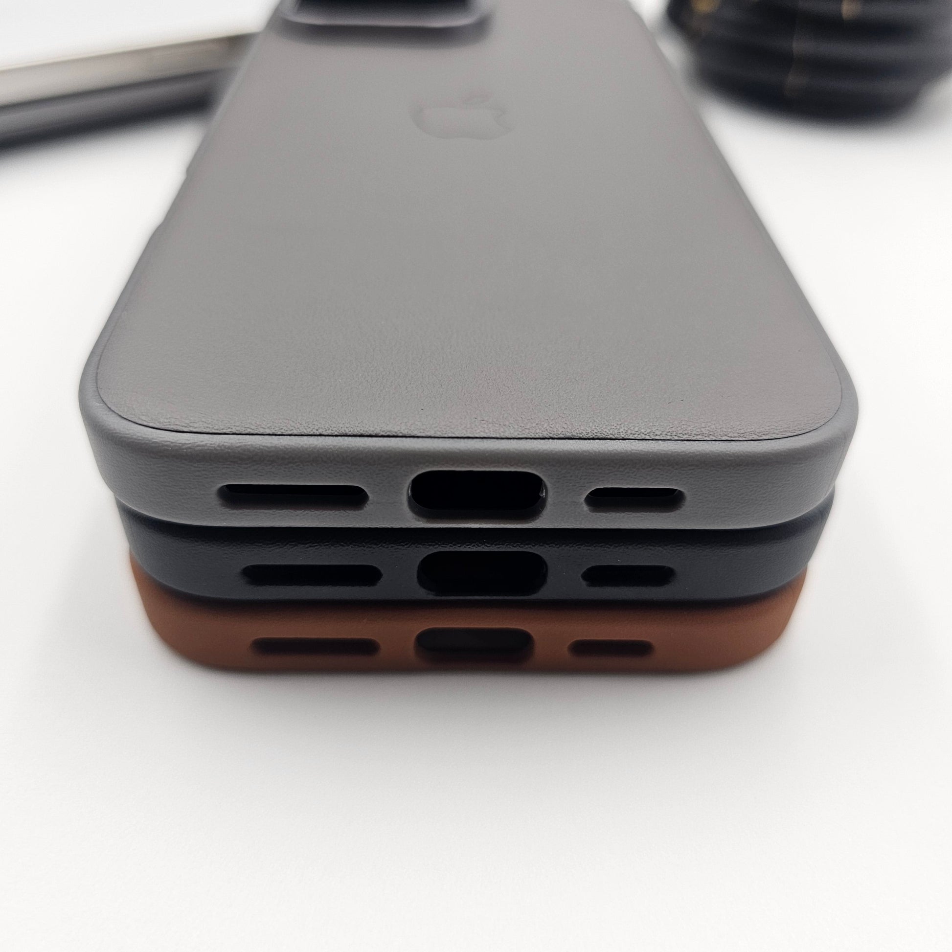 iPhone 16 Series PU Leather Logo Thin Case With Metal Camera Bump