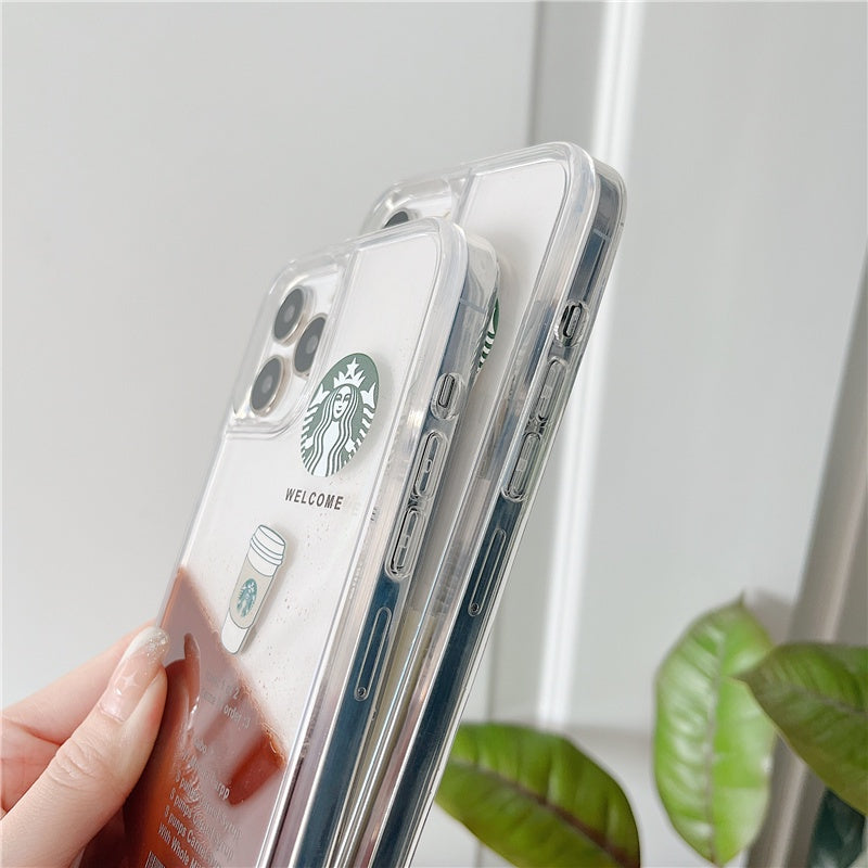 iPhone 16 Series StarBucks Liquid Coffee Floating Cup Case Cover