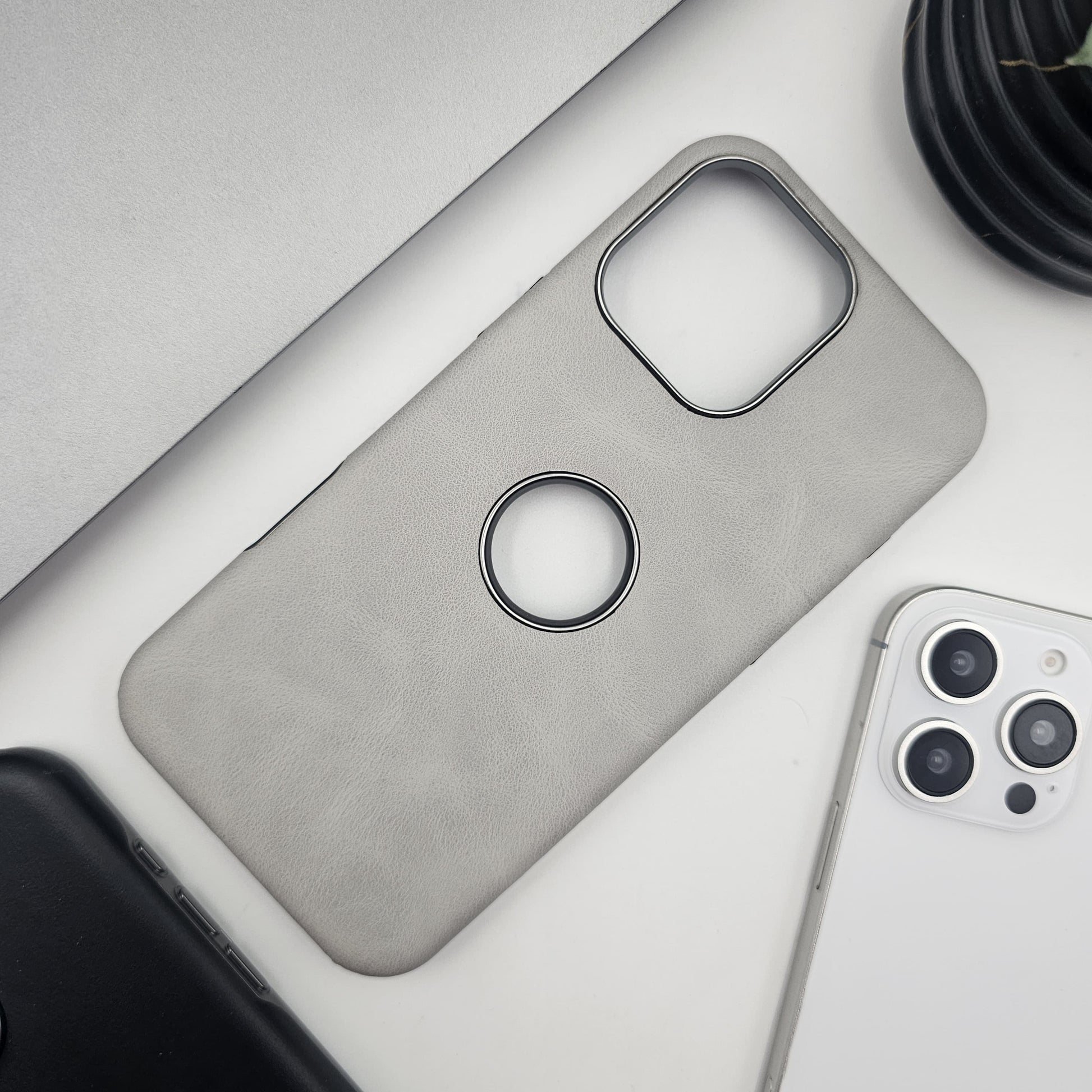 iPhone Luxury Leather Logo Cut Hidden Magsafe Case