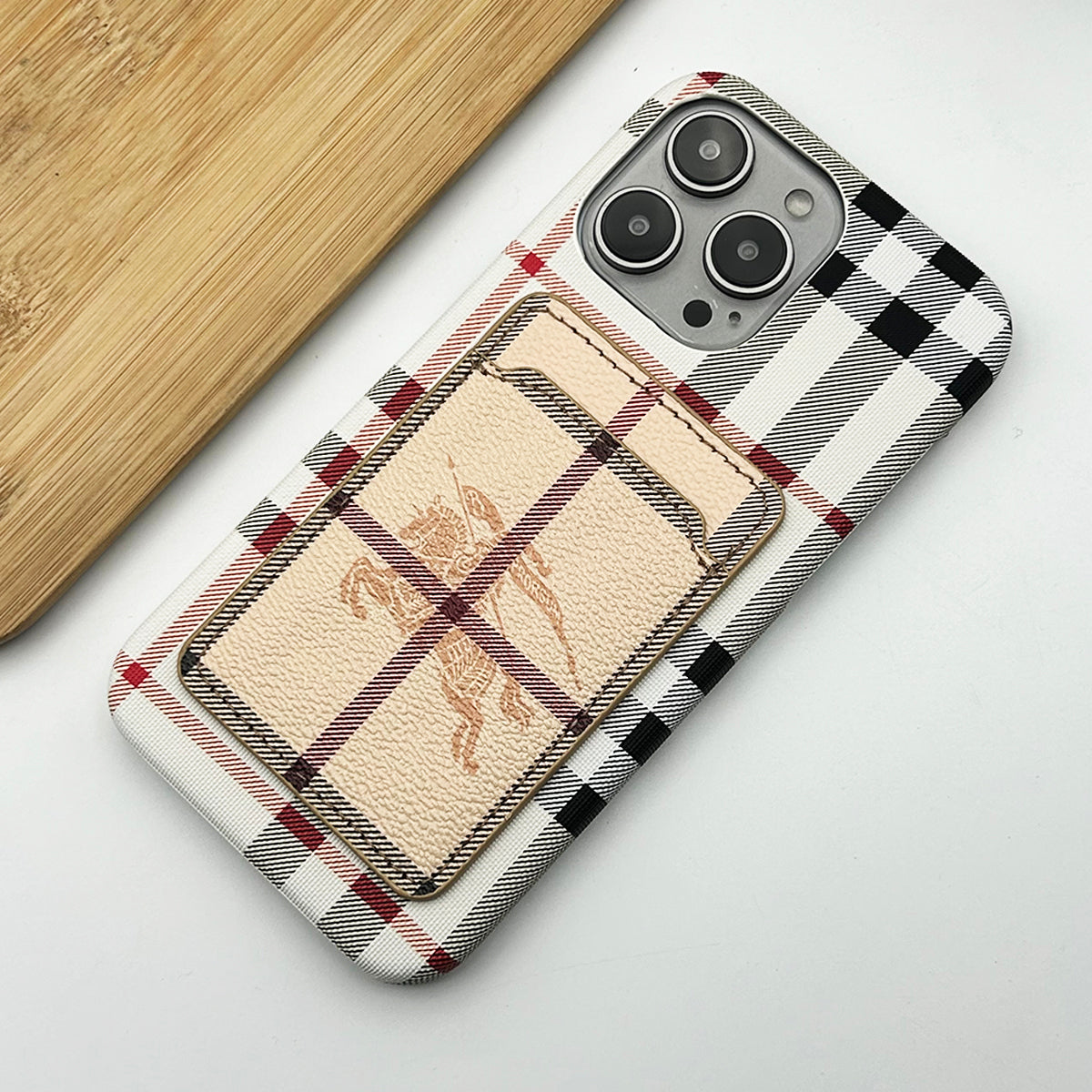 iPhone Luxury Plaid BB Pattern PU Leather Card Holder Case cover