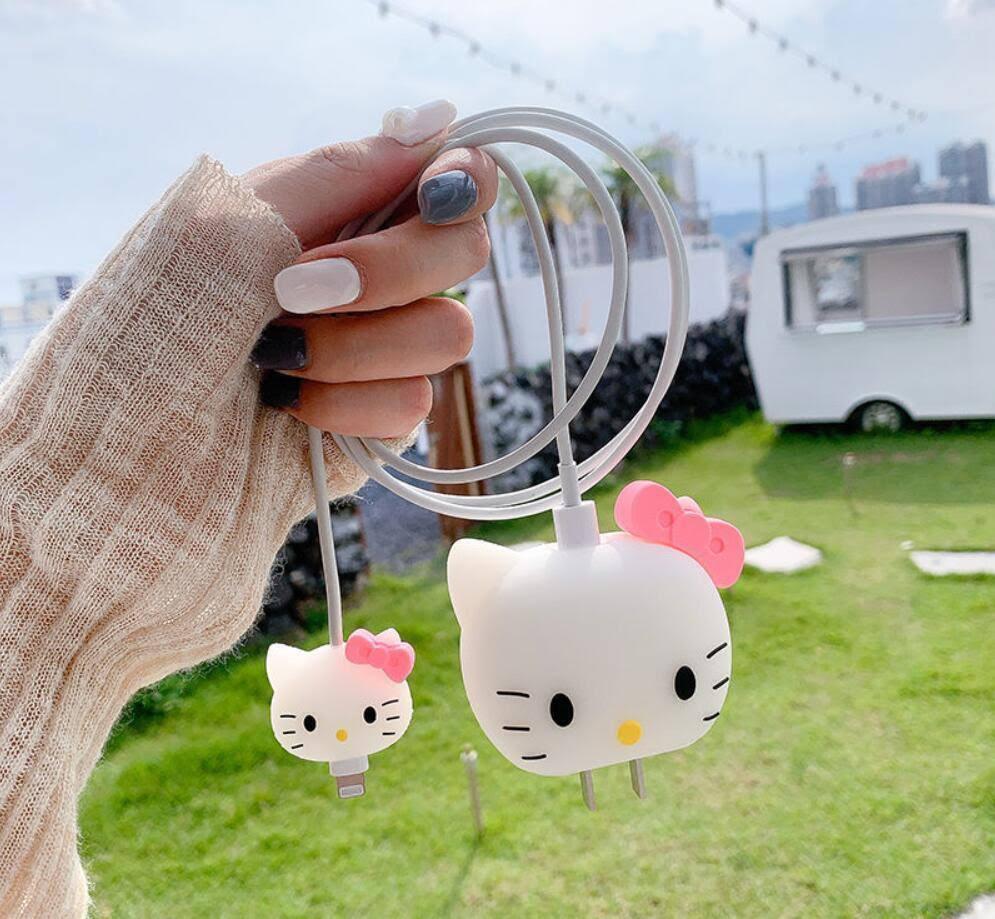 Kitty Theme Silicone Cable Protector and Adapter Case For iPhone Charger