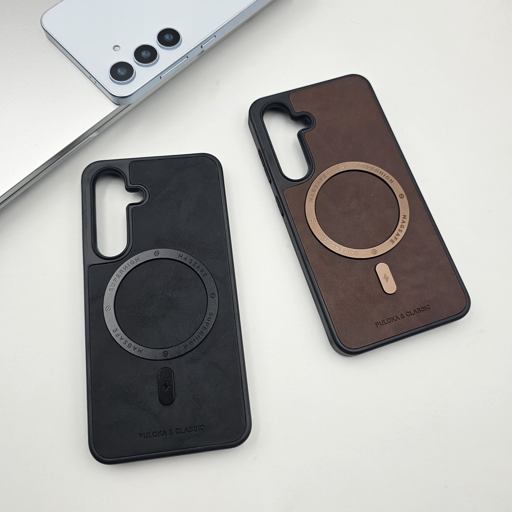 Luxury Leather MagSafe Case for Samsung Galaxy S25 FE | Premium Magnetic Charging Support