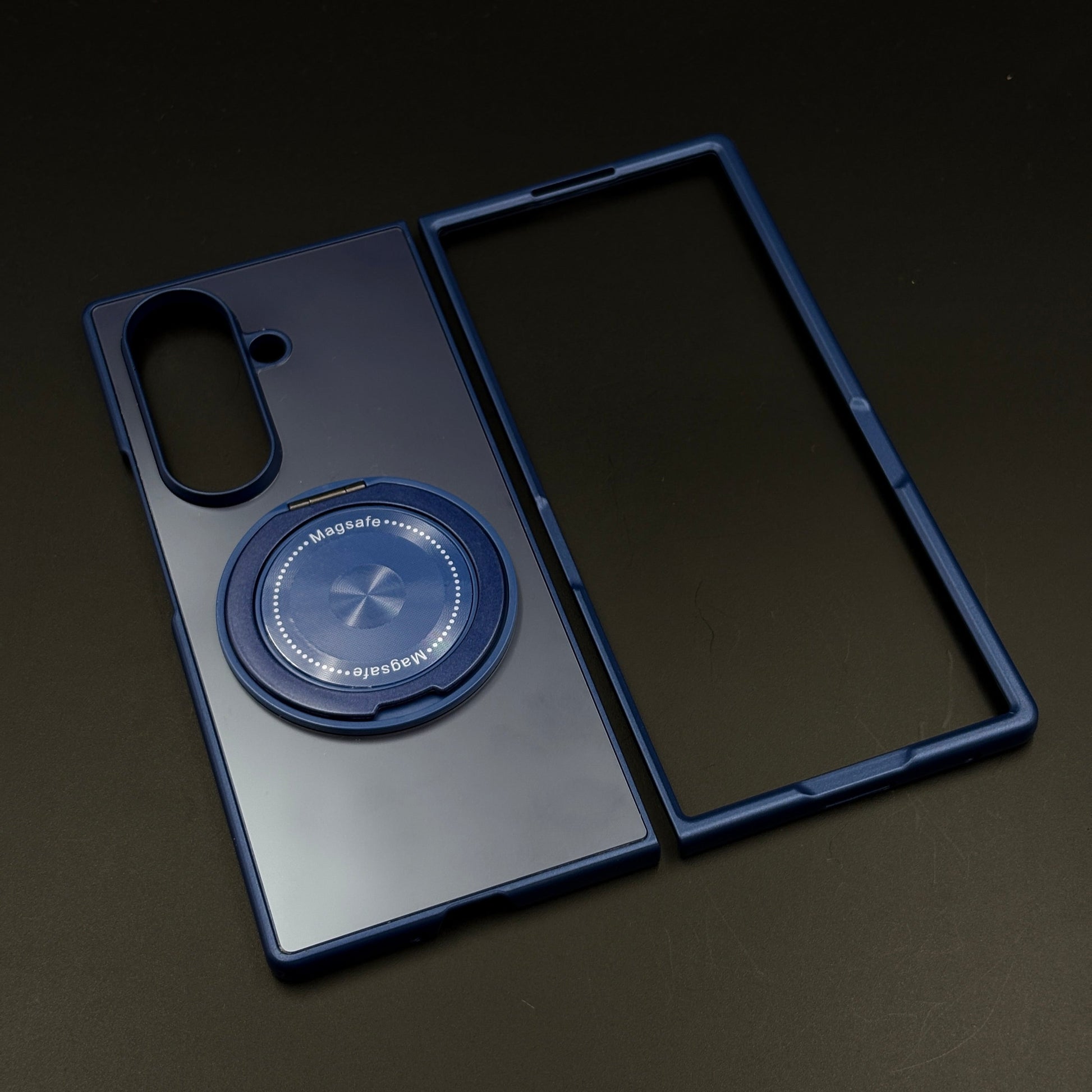 Unlock premium multitasking with this matte Z Fold 6 case featuring a sturdy 360° rotating metal stand and built-in MagSafe ring. Enjoy hands-free streaming, magnetic charging compatibility, and robust drop defense in a modern slim frame.