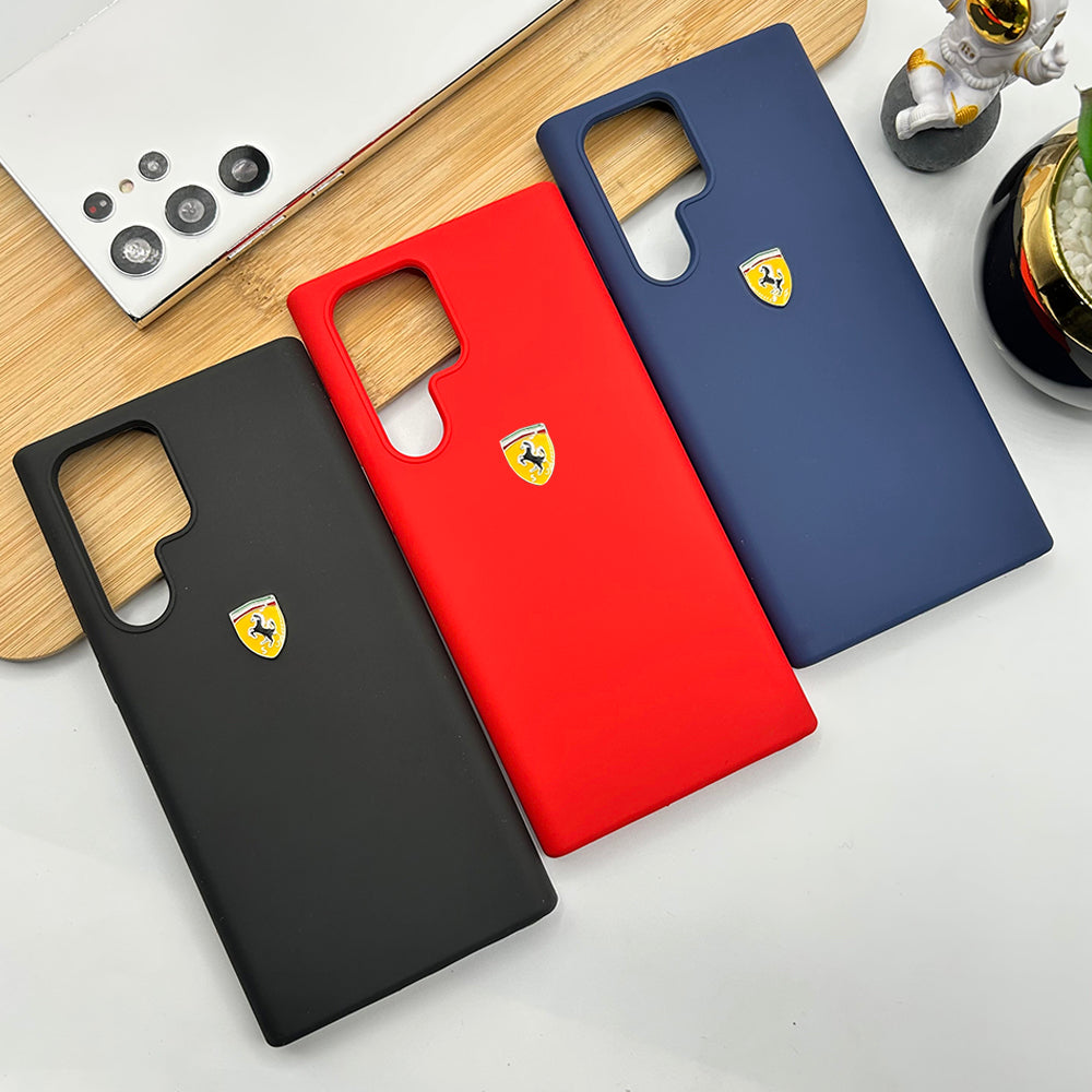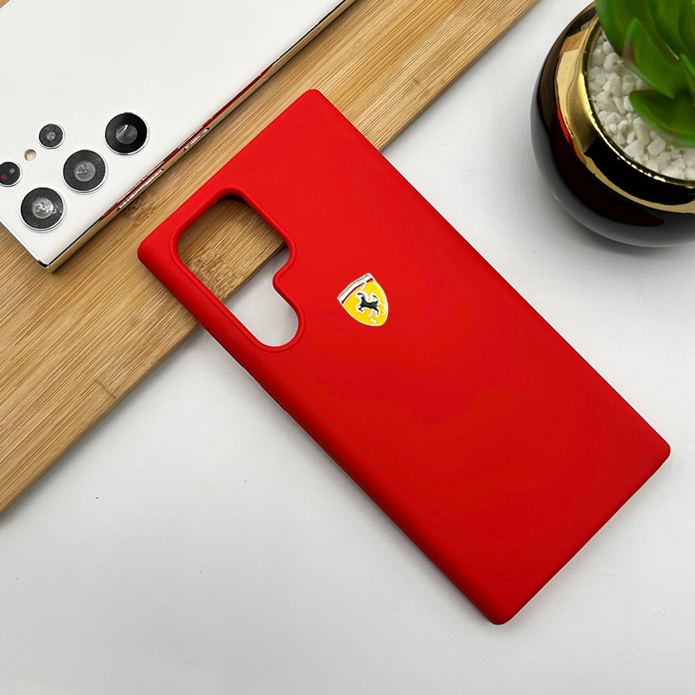 Samsung Galaxy S22 Ultra Ferrari Sports Car Logo Liquid Silicone Case Cover