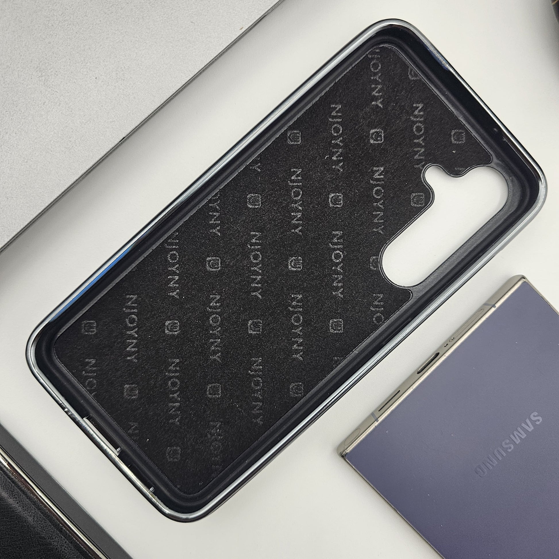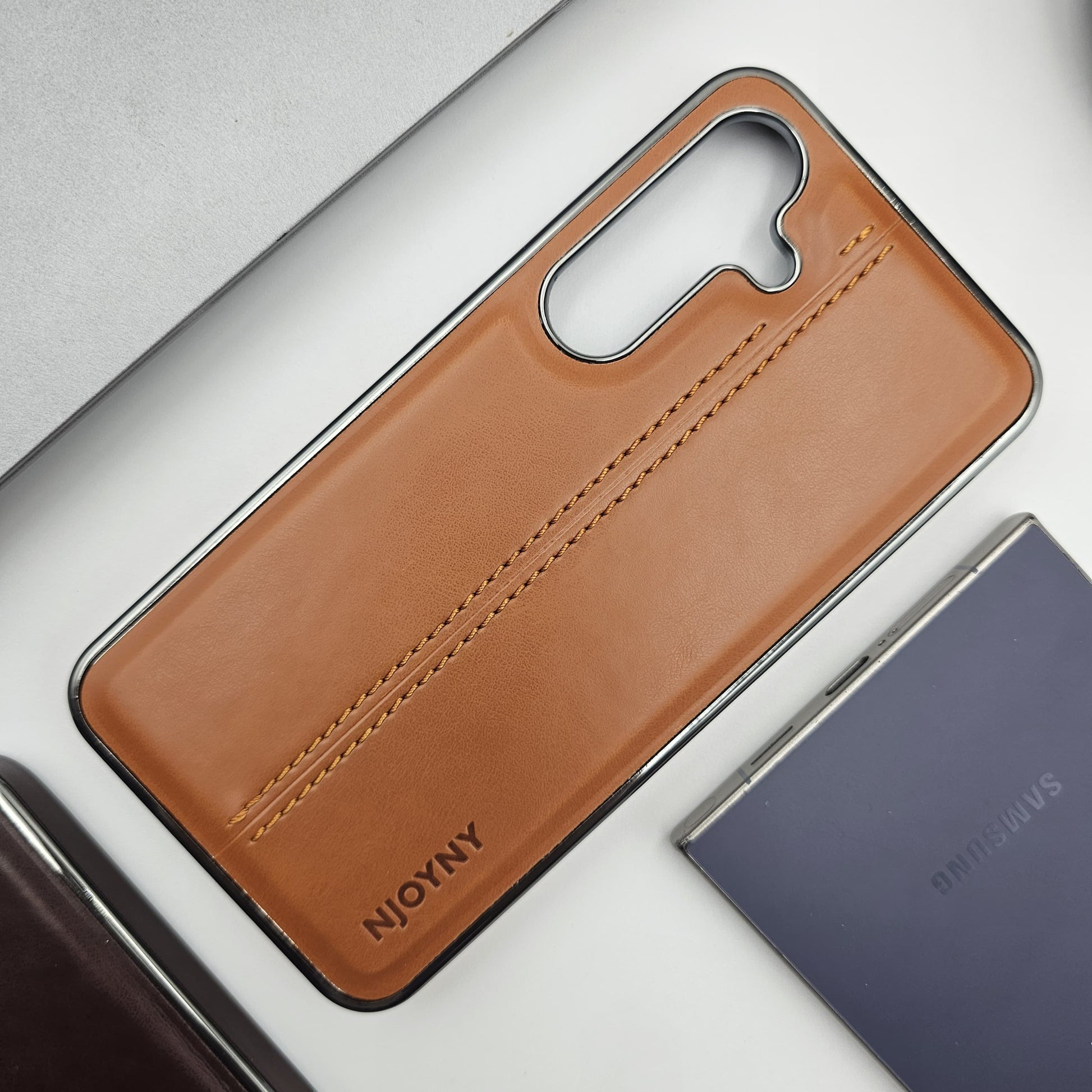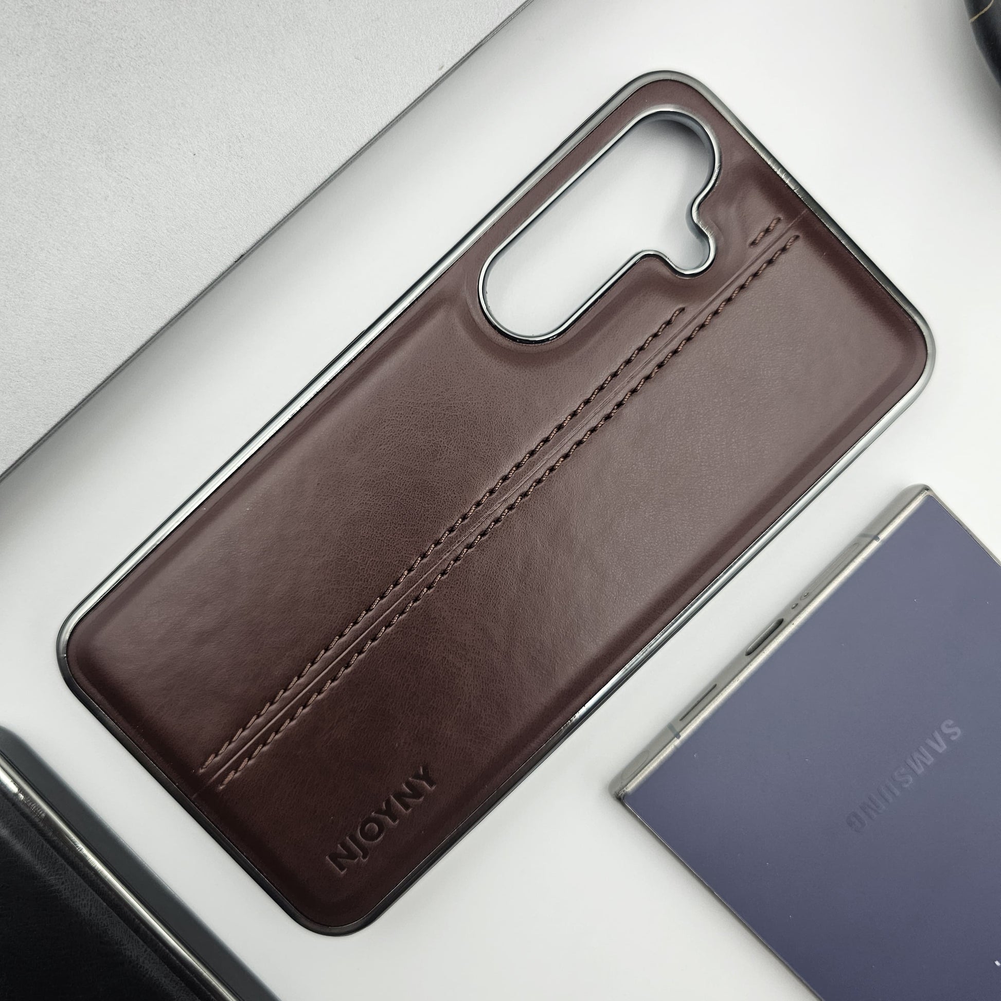 Samsung Galaxy S23 FE Centre Stitched Leather Case Chrome Border Inside Velvet