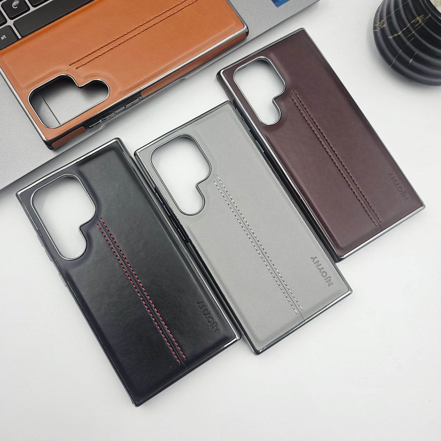 Samsung Galaxy S23 Ultra Centre Stitched Leather Case Inside Velvet