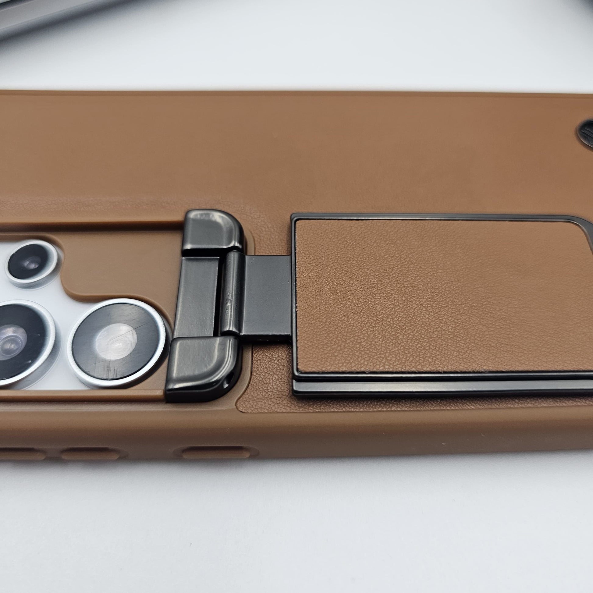 Samsung Galaxy S23 Ultra Leather Foldable Metal Stand Camera Protection Case