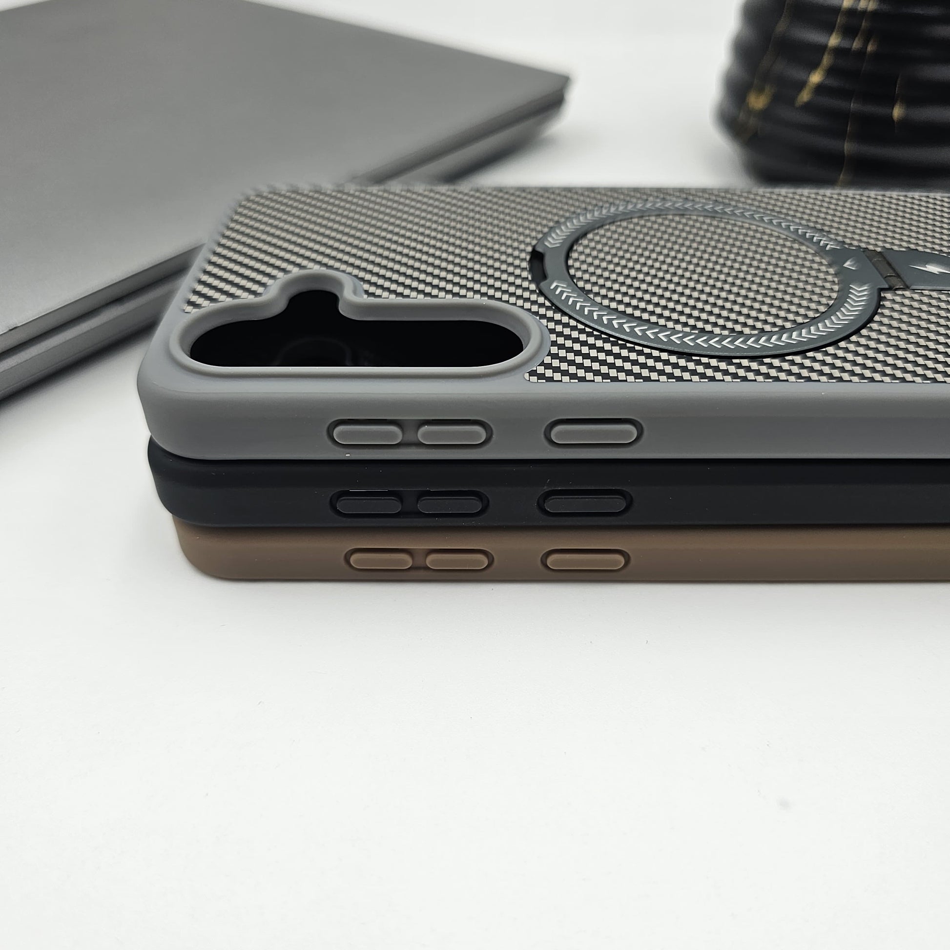 Transform your phone with our premium carbon fiber-inspired case, blending protection and elegance in one. Featuring a robust magnetic ring stand, this case is perfect for hands-free viewing and easy magnetic mounting. The textured finish offers a sophisticated look while ensuring a secure grip.