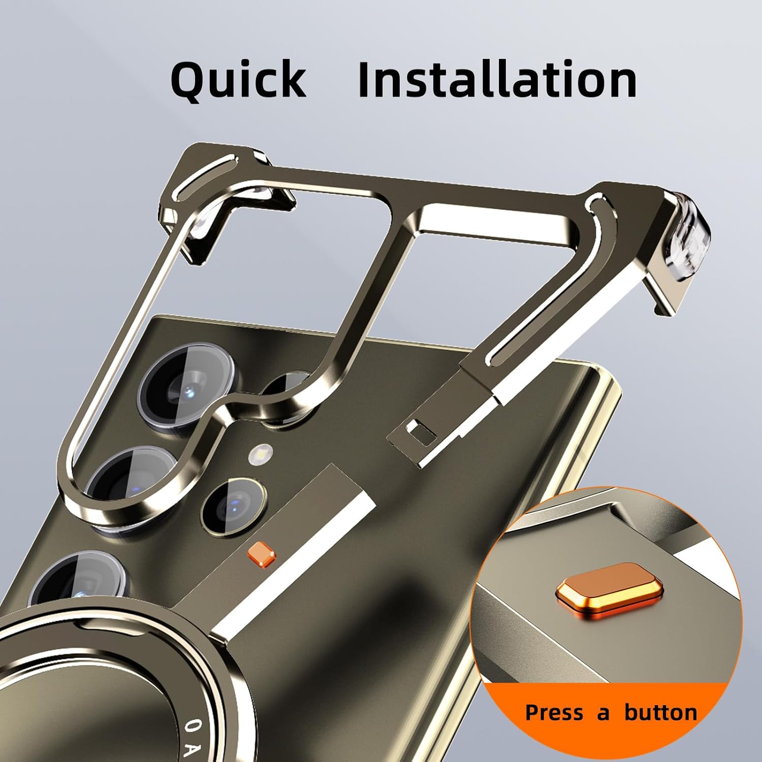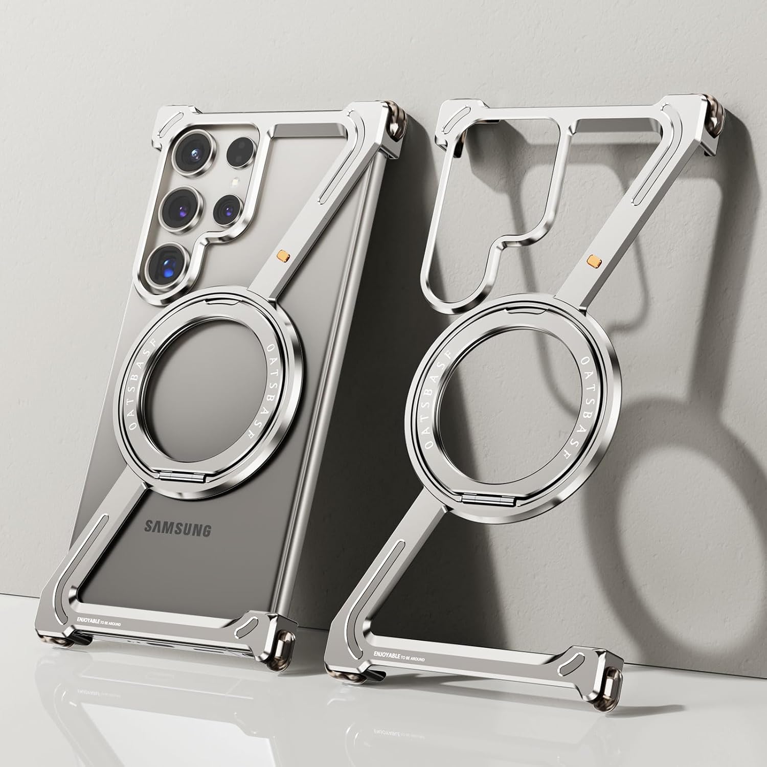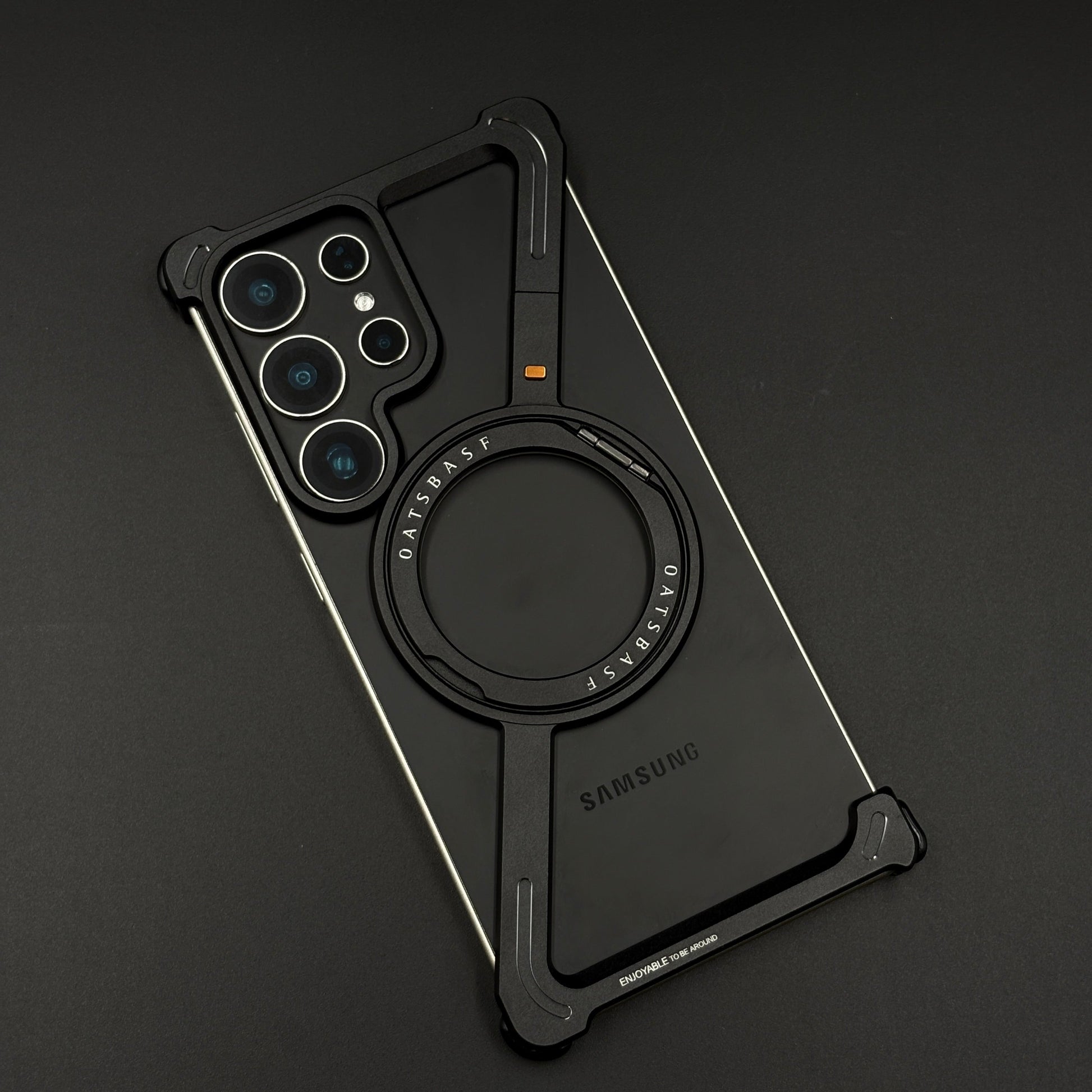Protect and style your Galaxy S24 Ultra with this Z shape aluminum metal case featuring a frameless design and 360° rotating kickstand. Built for durability and elegance, it ensures a sleek look, strong protection, and hands-free convenience.