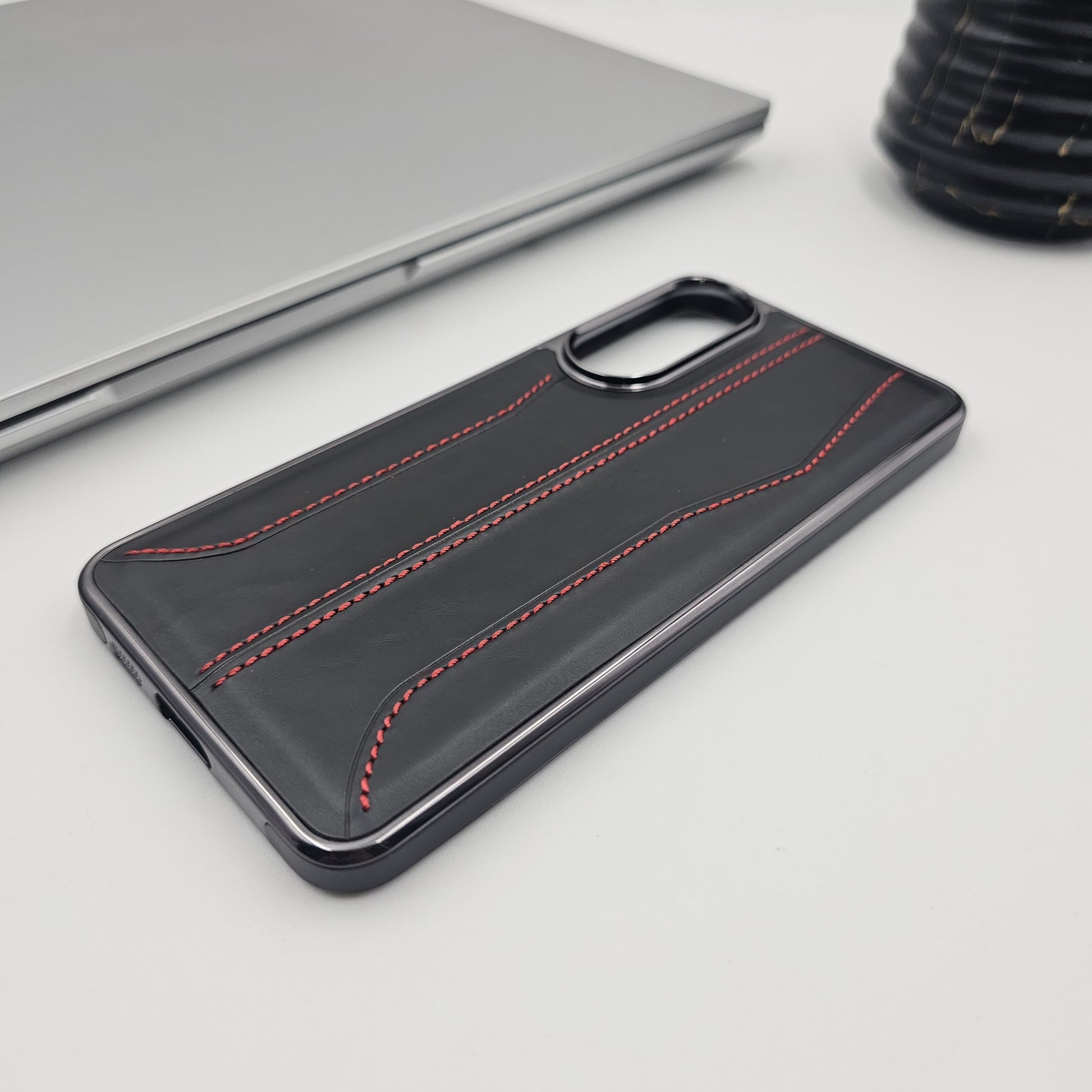 Samsung Galaxy S25 Edge Stripe Stitched Leather Case Minimalistic Design