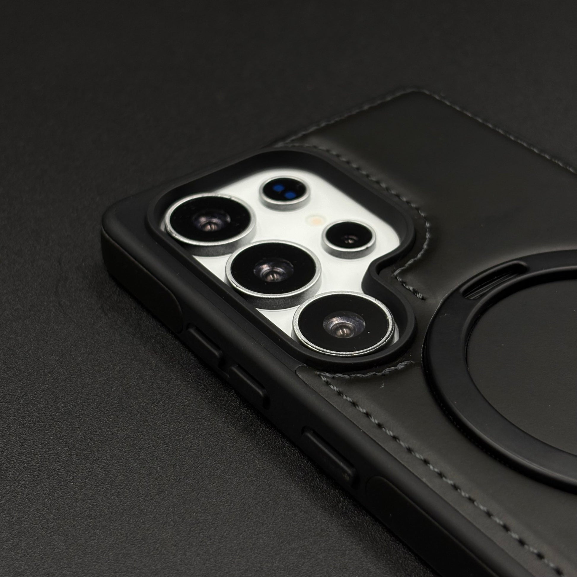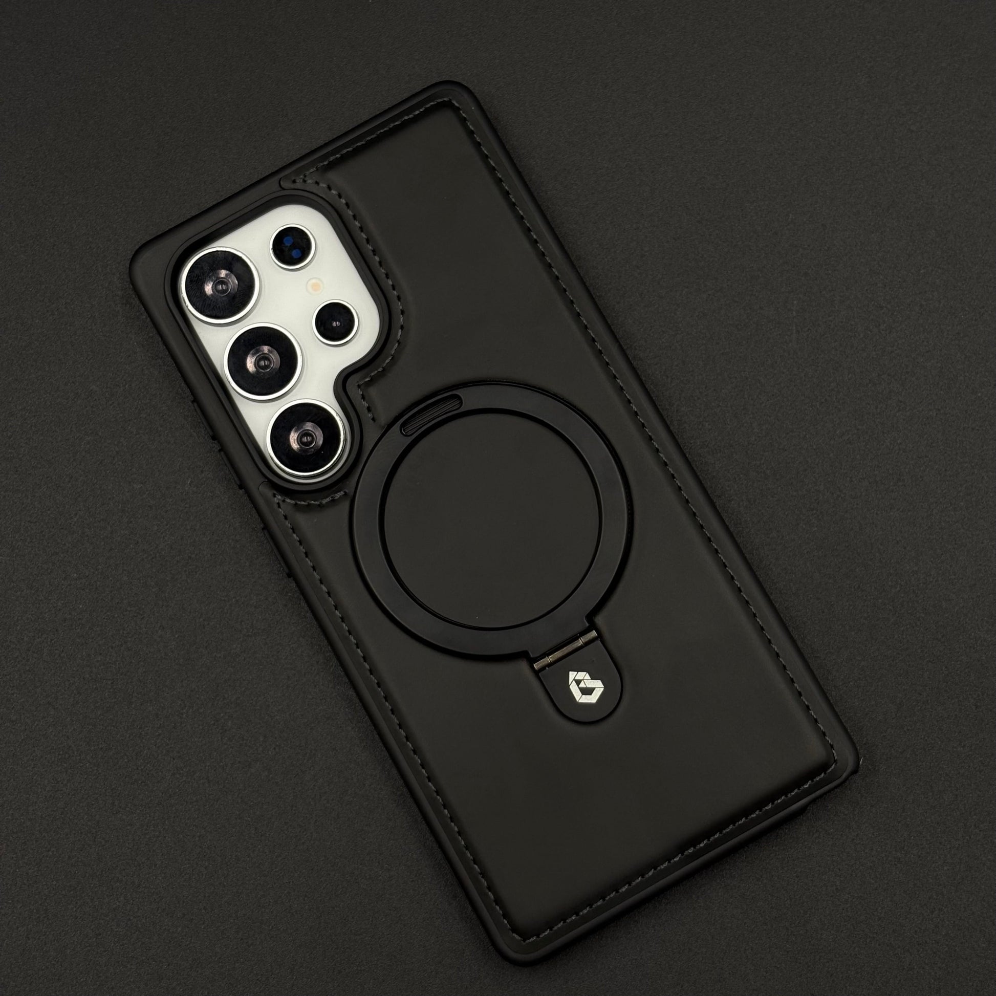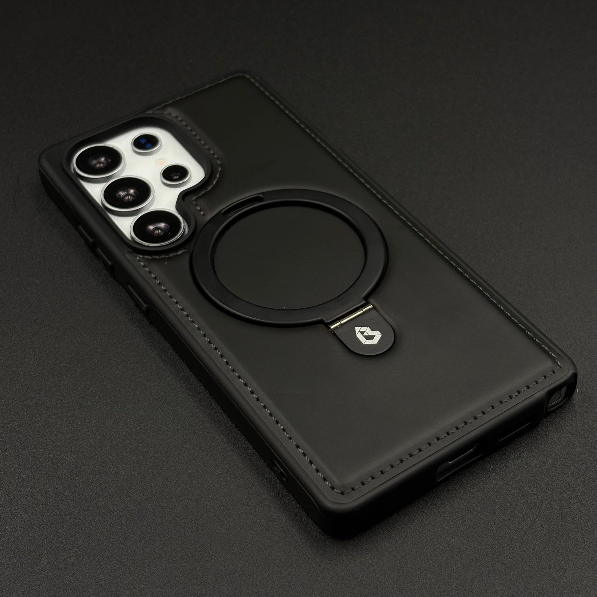 Upgrade your Samsung Galaxy S25 Ultra with a blend of timeless style and modern tech. This premium leather case features a built-in MagSafe-compatible ring stand, combining elegance with utility for your on-the-go lifestyle. Designed for those who demand both sophistication and convenience.